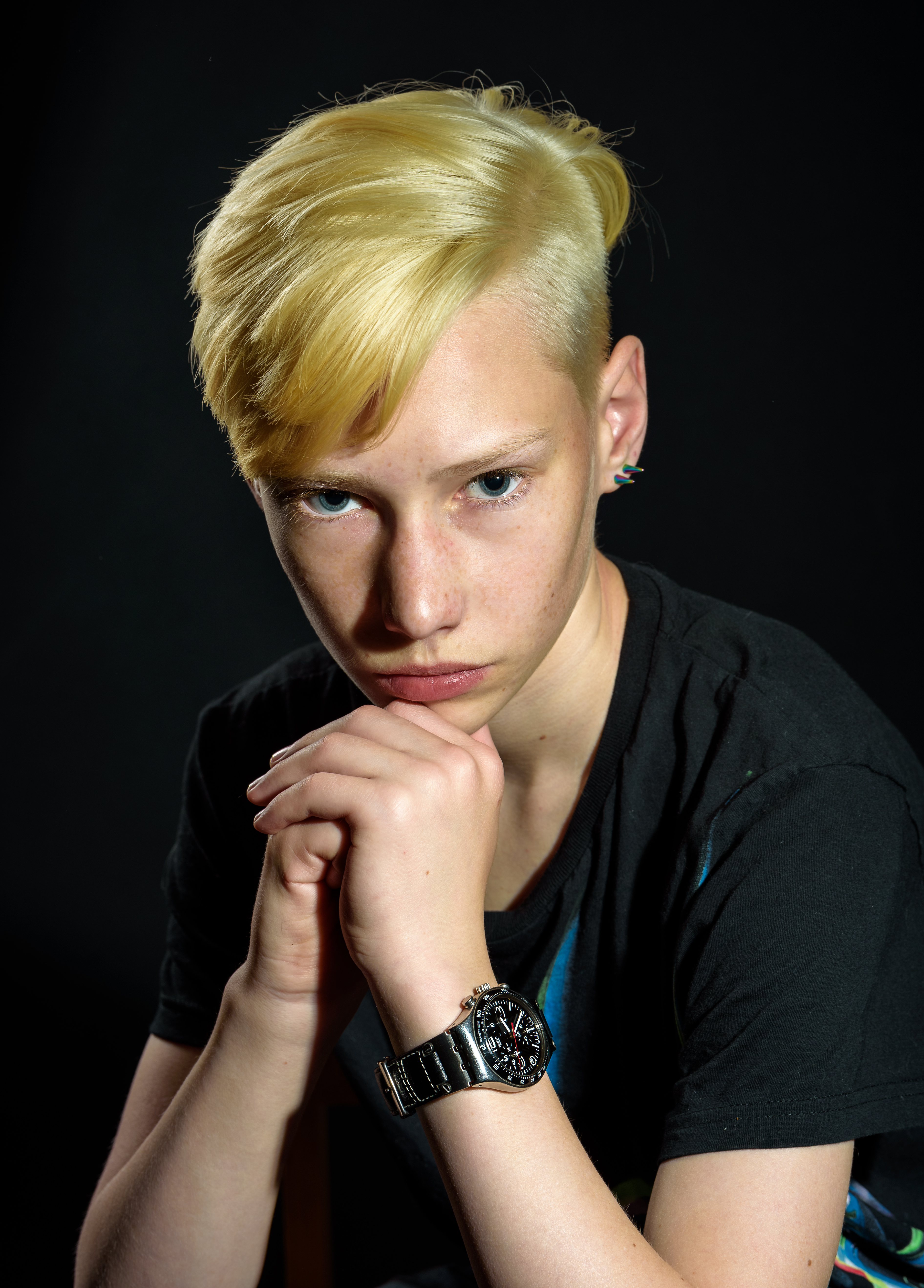 Грамотно использовали контровой источник для прорисовки контура теневой стороны лица.