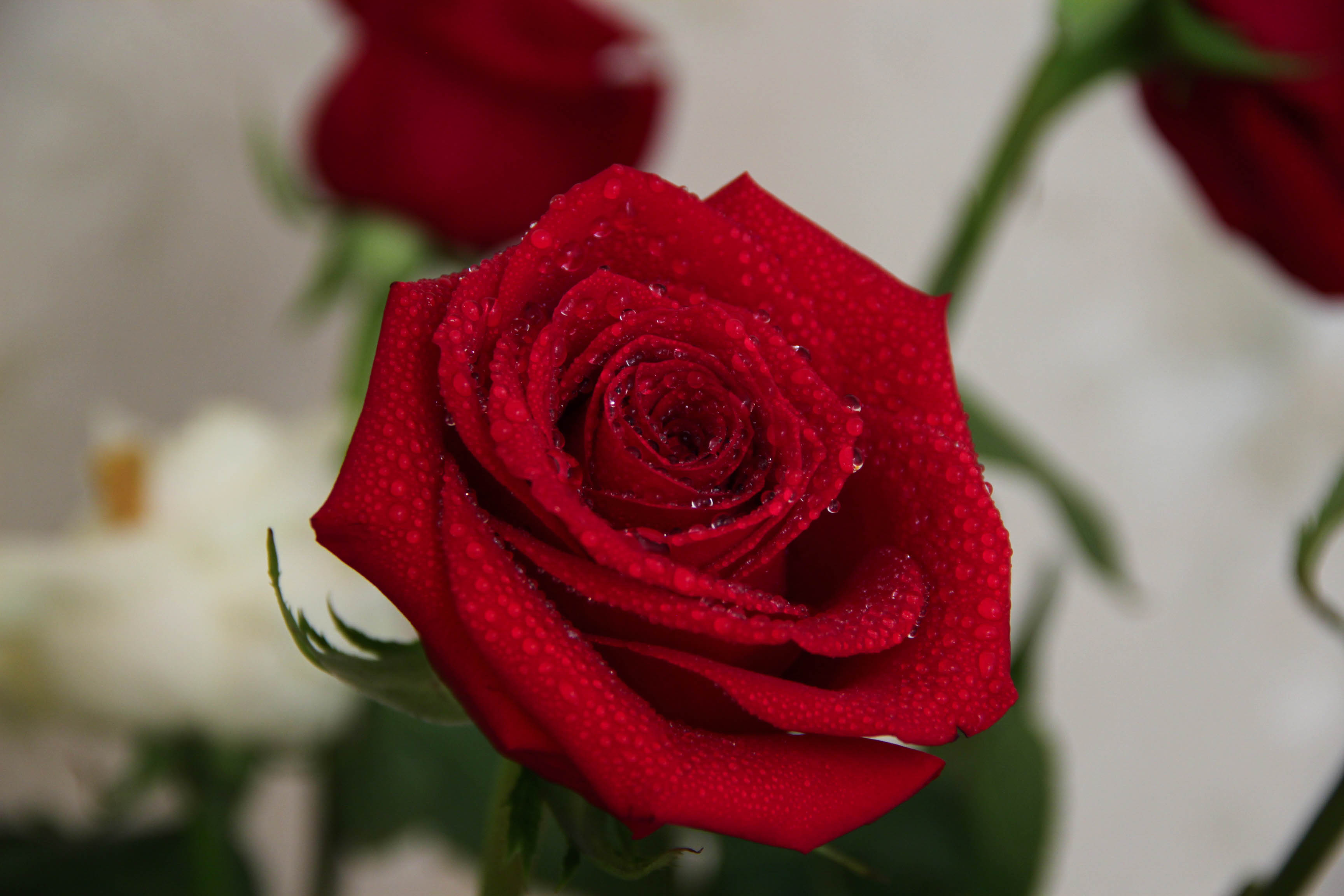 Освещение равномерное, бутон получился светлым и легким. Бликами прорисована каждая капелька.