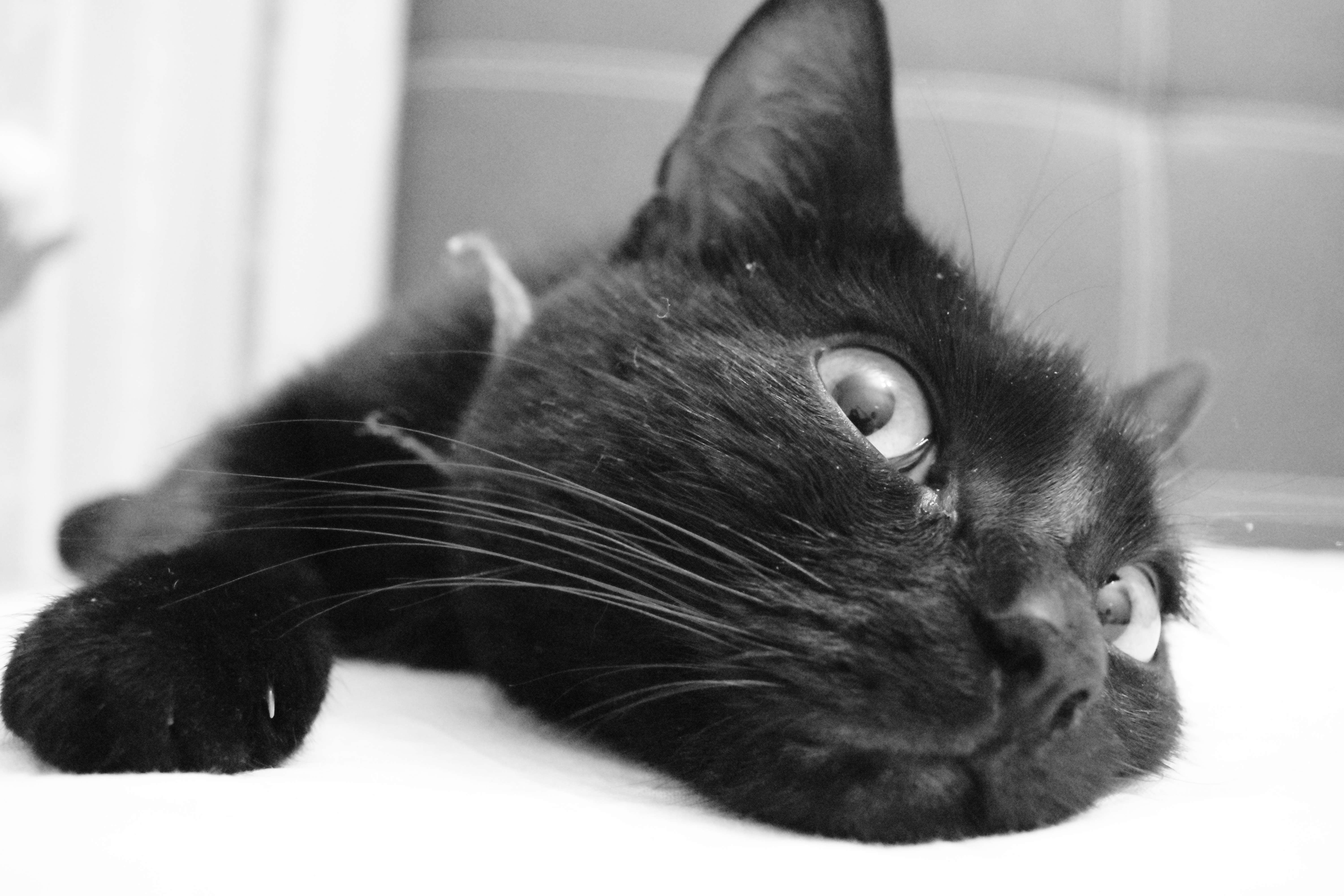 После активного трудового дня коту полагается немного отдохнуть. Черный кот намного выгоднее смотрится в черно-белом режиме, а фотография на уровне глаз кота придает особый шарм.