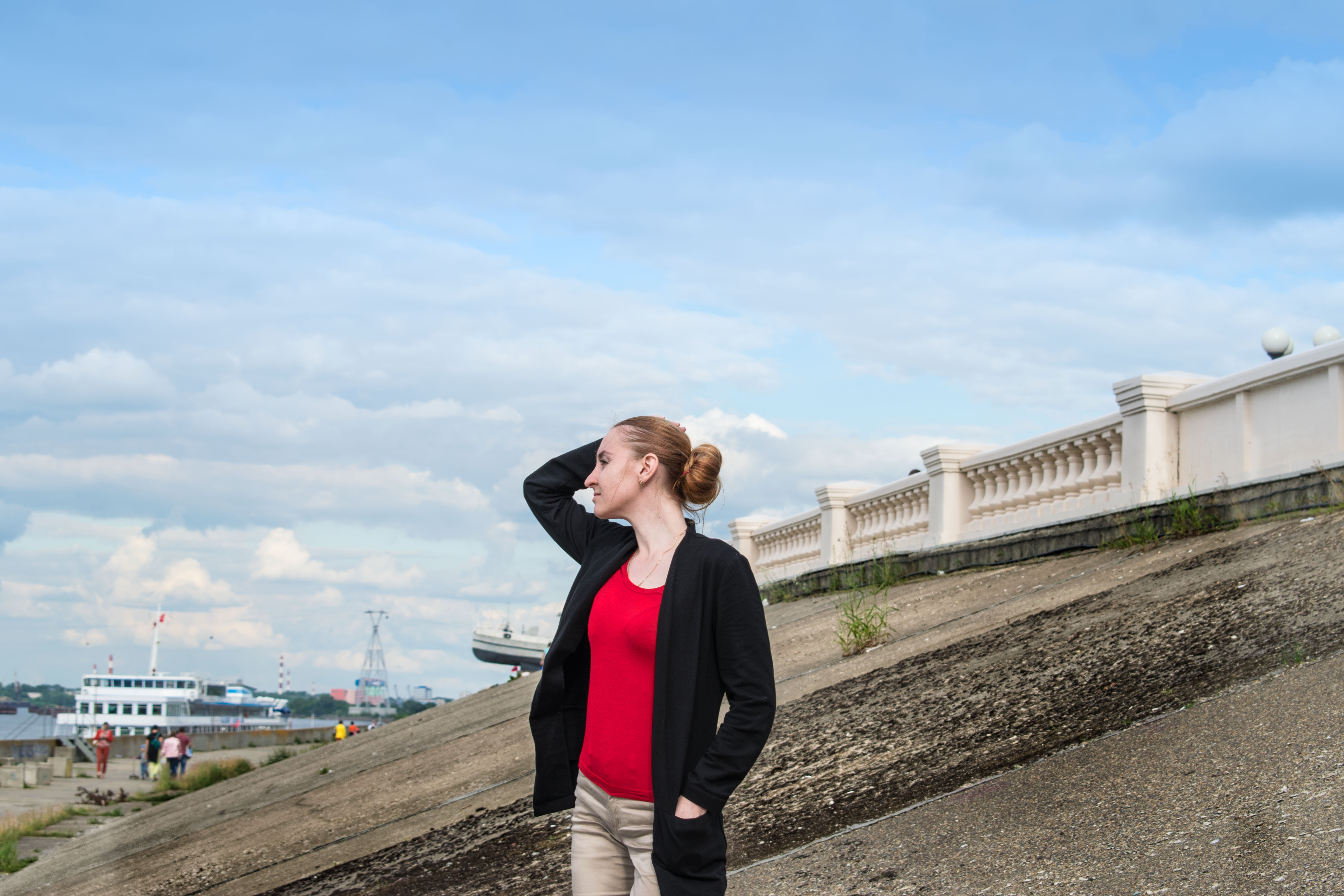 Вспышку при хорошей погоде лучше не использовать, она может лишить снимок объёма. Так как взгляд направлен в сторону, желательно оставить больше визуального пространства по направлению взгляда, чтобы взгляд не упирался в границу кадра.