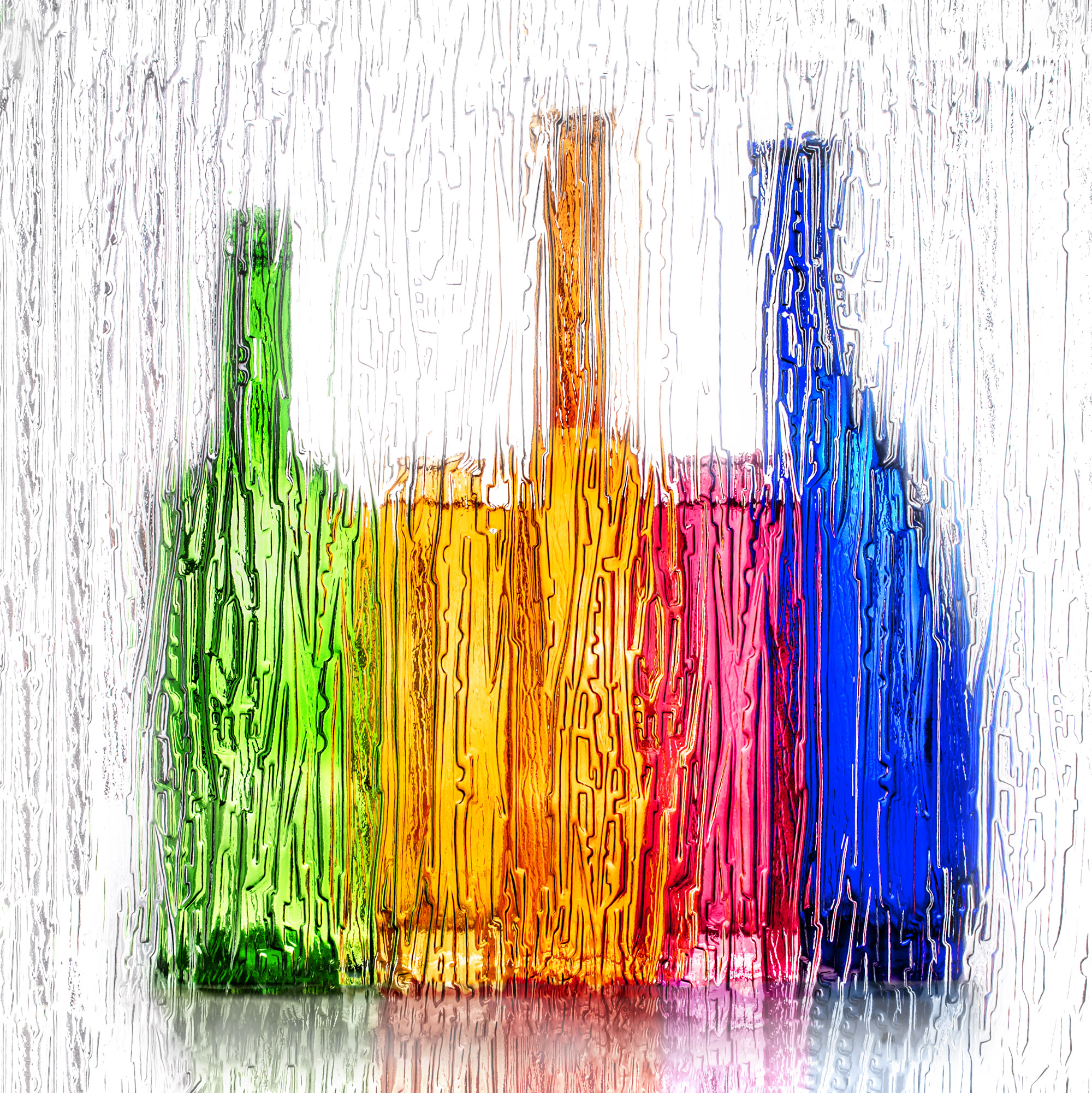 Отличная идея и реализация! Кадр смотрится оригинально, необычно, но очень здорово. Выгодное сочетание ярких насыщенных цветов. Фактура рифлёного стекла хорошо передана.