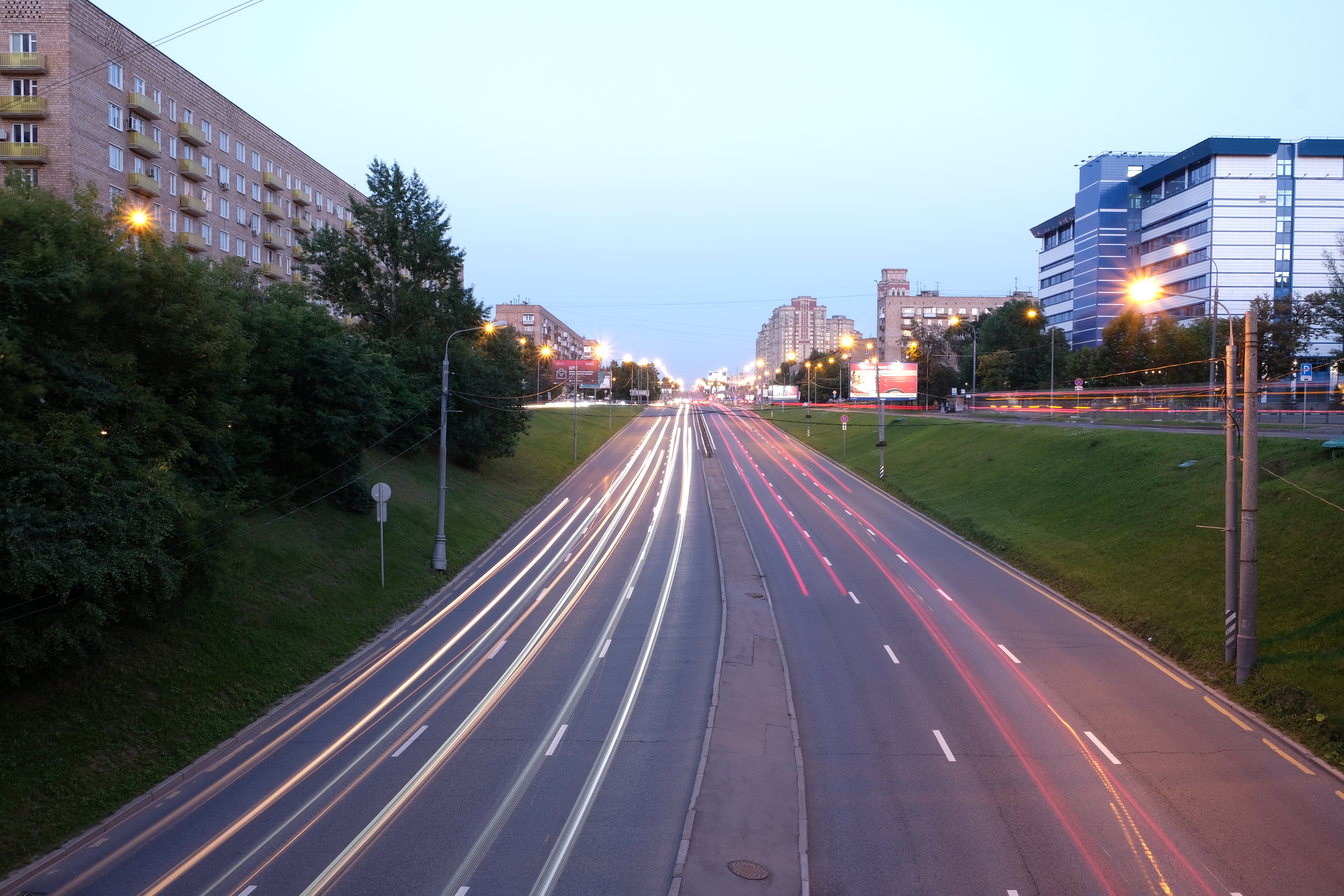 При съемке в режиме М ориентируйтесь при выборе параметров экспозиции на шкалу. . Если при выборе значения диафрагмы или выдержки , бегунок опускается ниже 0 , значит фотография станет темнее и наоборот. В данном случае регулировать стоило выдержку , выбрать более короткую. Линии от фар при этом были бы все еще достаточно длинными.