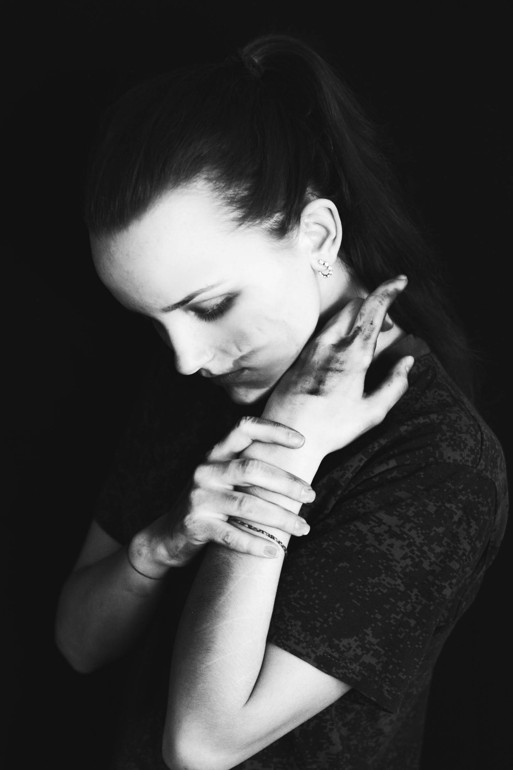 Снимая модель,я выбрала источник света-окно. Для того,чтобы задний фон не отвлекал взгляд,я сделала фон чёрным.Чтобы убрать жёсткость света,я завесила окно не очень плотной тканью. В этом кадре больший акцент теней идёт на руки,а лишь во вторую очередь на лицо модели. Но это не перебивает всей композиции портрета. Экспериментировать со светом довольно-таки непросто,но очень увлекательно и интересно.
