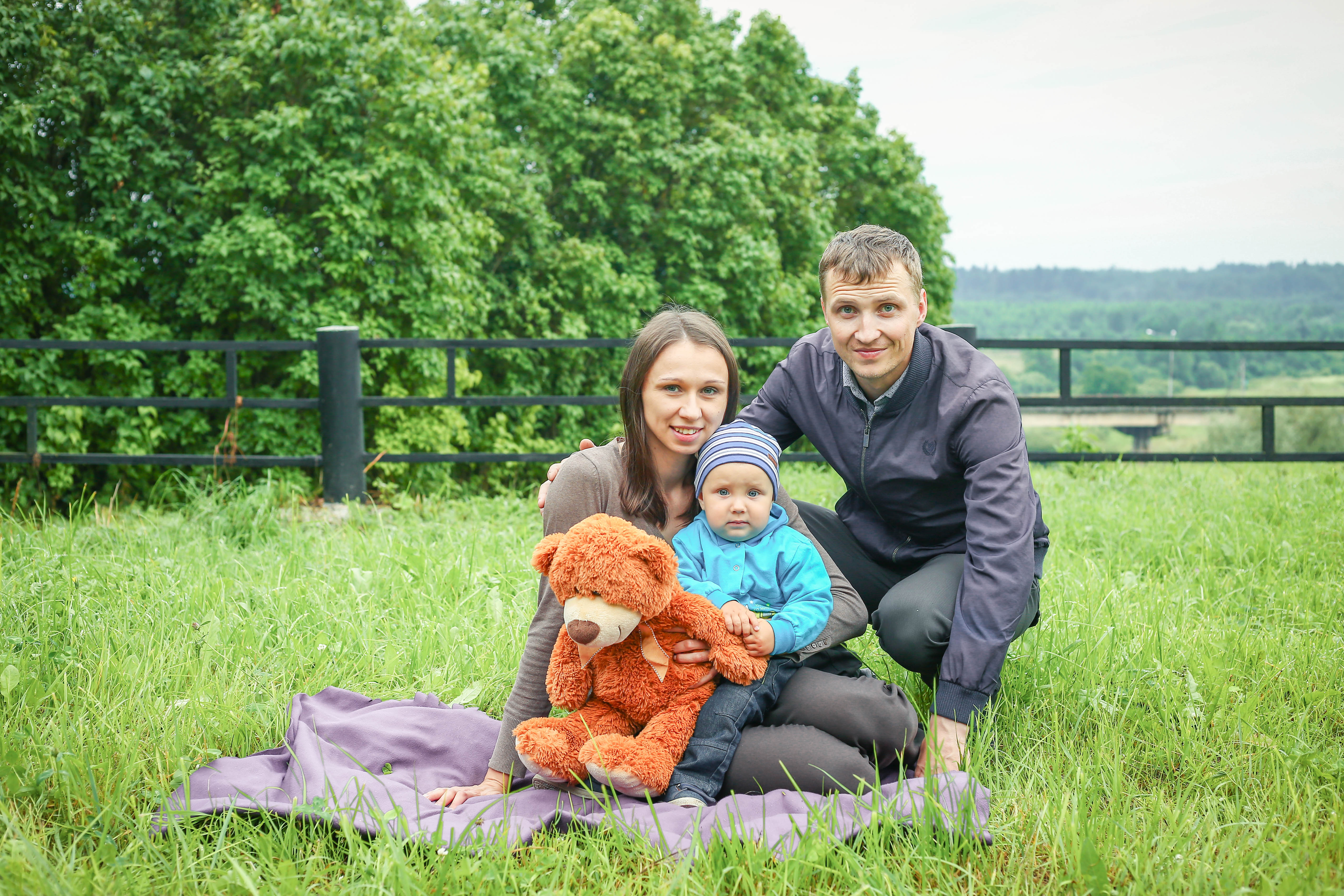 Камеру в ручном режиме настроили правильно, прикрыли диафрагму, что помогло всех героев уместить в зону резкости. Точку съемки по высоте подходящую подобрали. Скомпоновали кадр удачно, семья выглядит как единое целое на фото. И цветовое решение приятное у снимка.