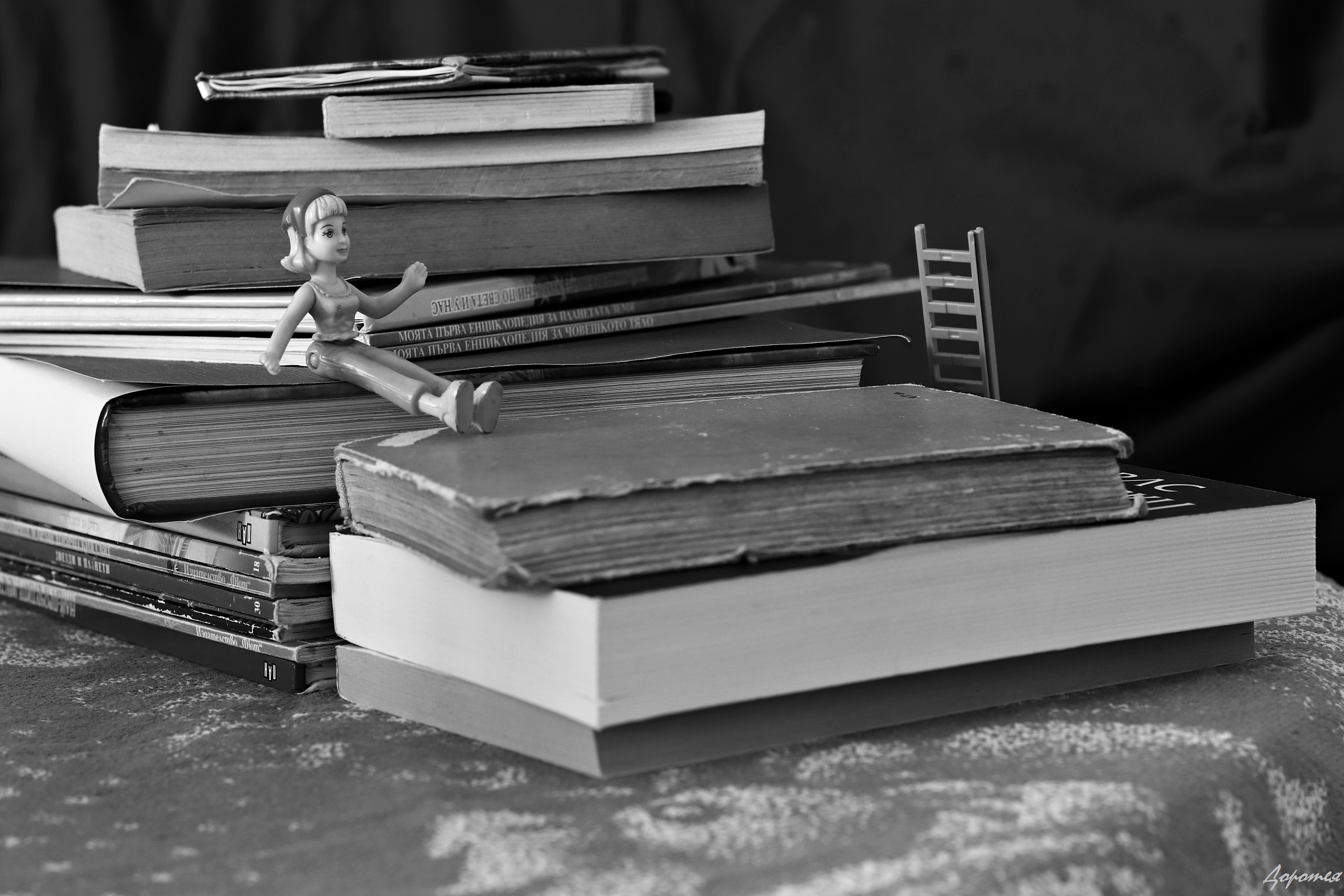 Възползвах се от възможността да направя един малко по- различен кадър. И за да не бъдат просто книги...заложих на тази идея - "Извисена в планината от знания". Надявам се да съм в границите на поставената задача.