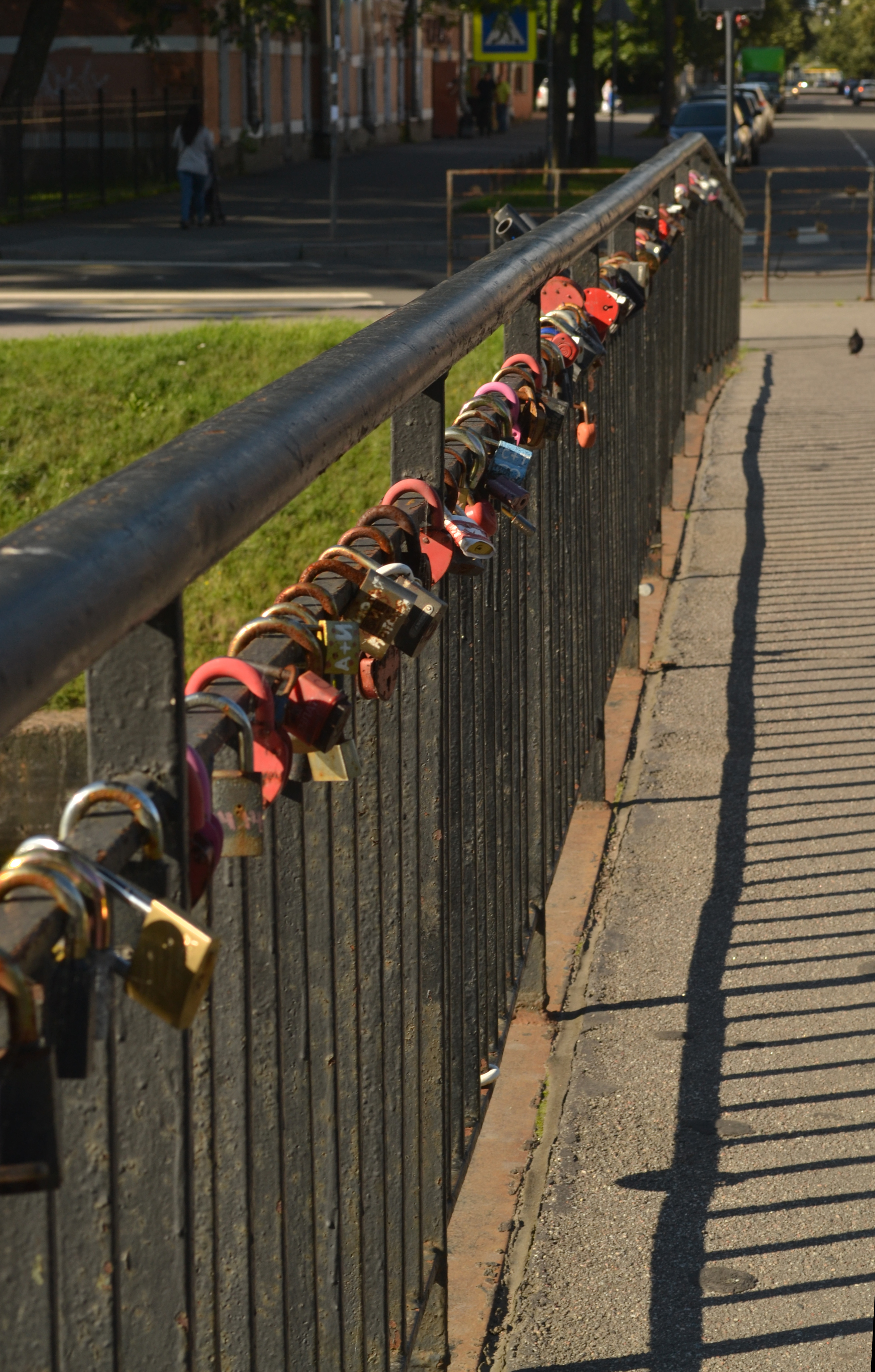 Все верно, ритм замков и вертикальных линий отлично привлекает внимание. И перспектива в кадре хорошо чувствуется благодаря линиям, уводящим взгляд вдаль.