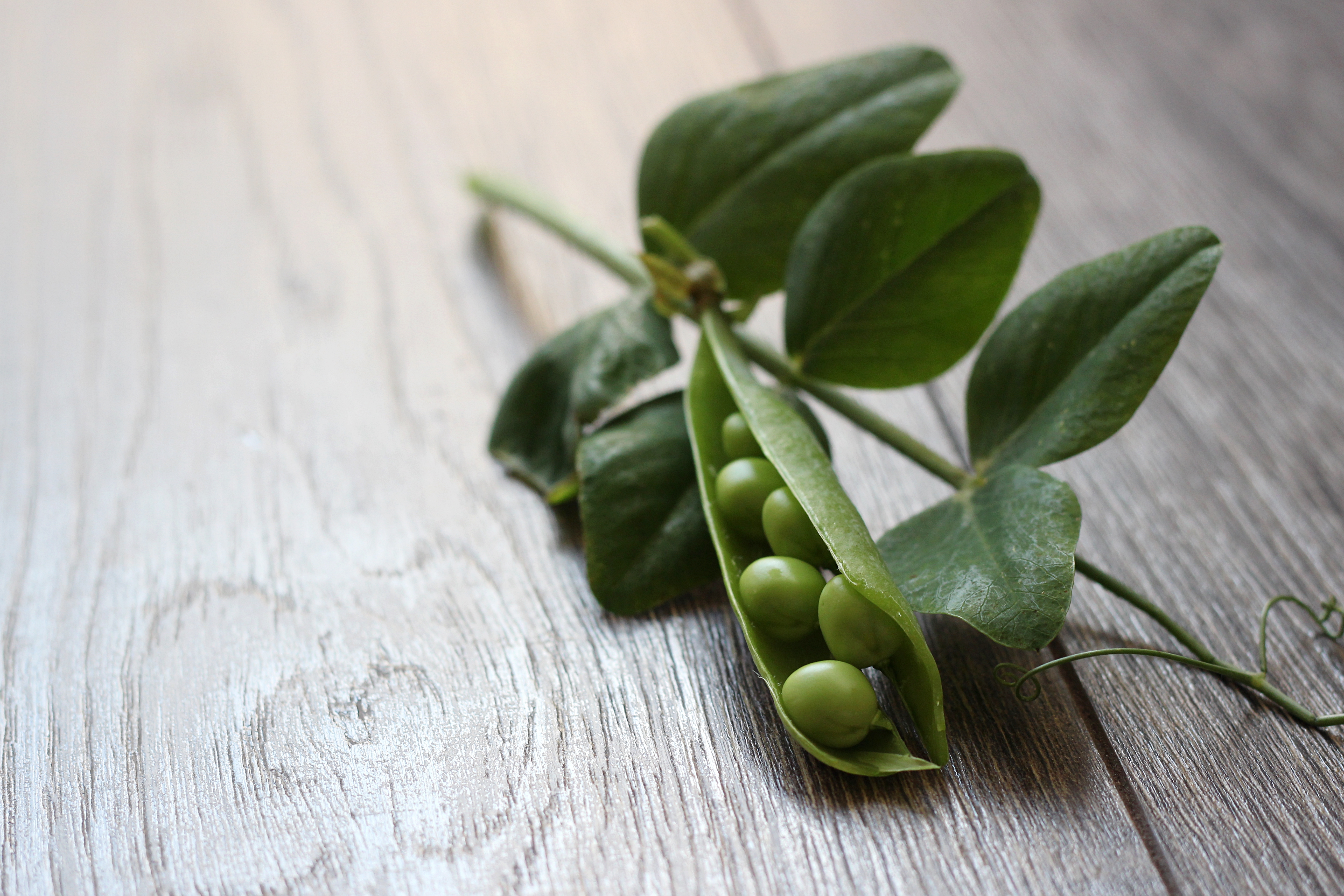 Веточка зеленого горошка. Снято при естественном освещении, боковой свет слева от окна.