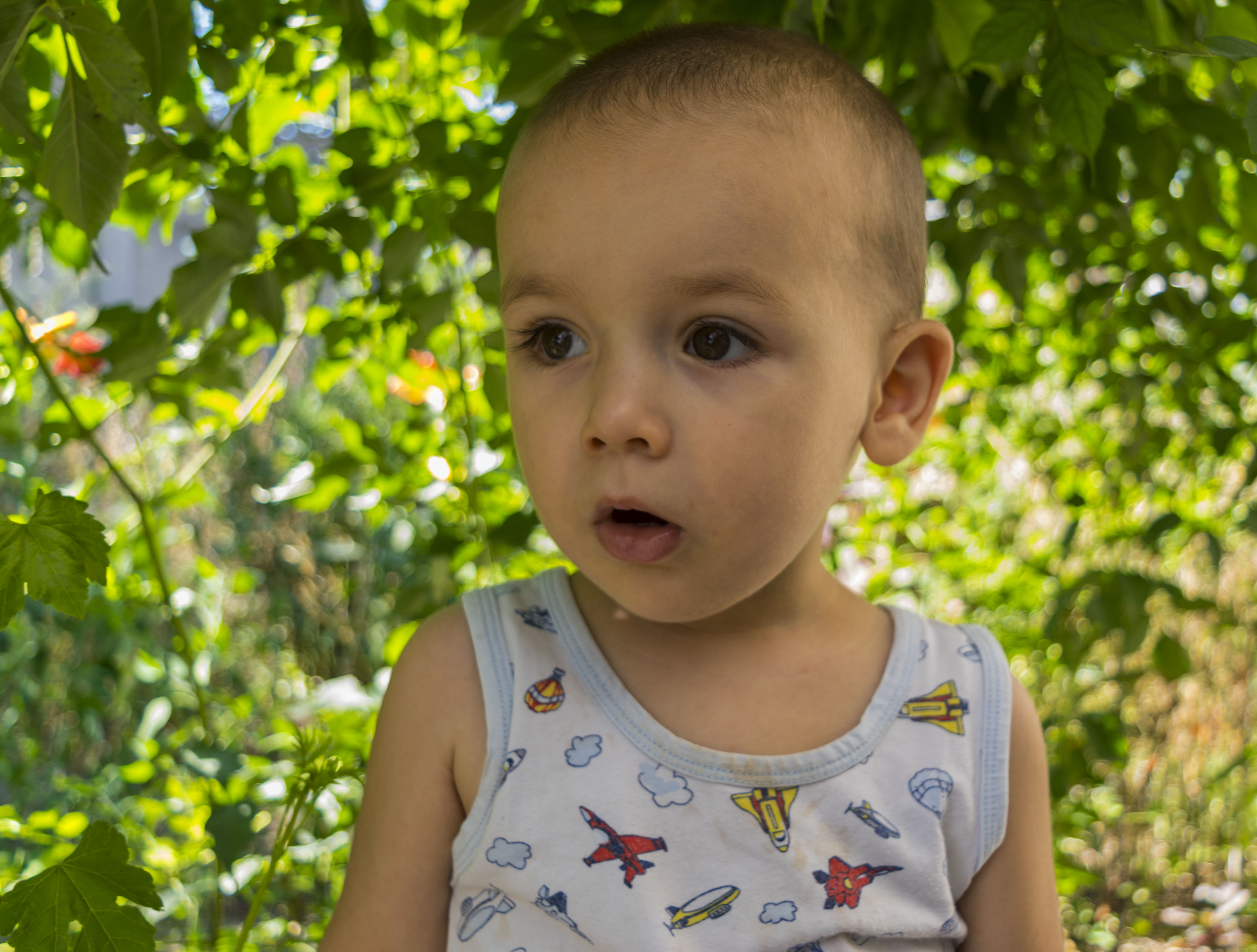 Приятный портрет у Вас получился. Здорово поймали эмоции! Удачно скомпоновали, оставив больше пространства по направлению взгляда. С резкостью всё в порядке.