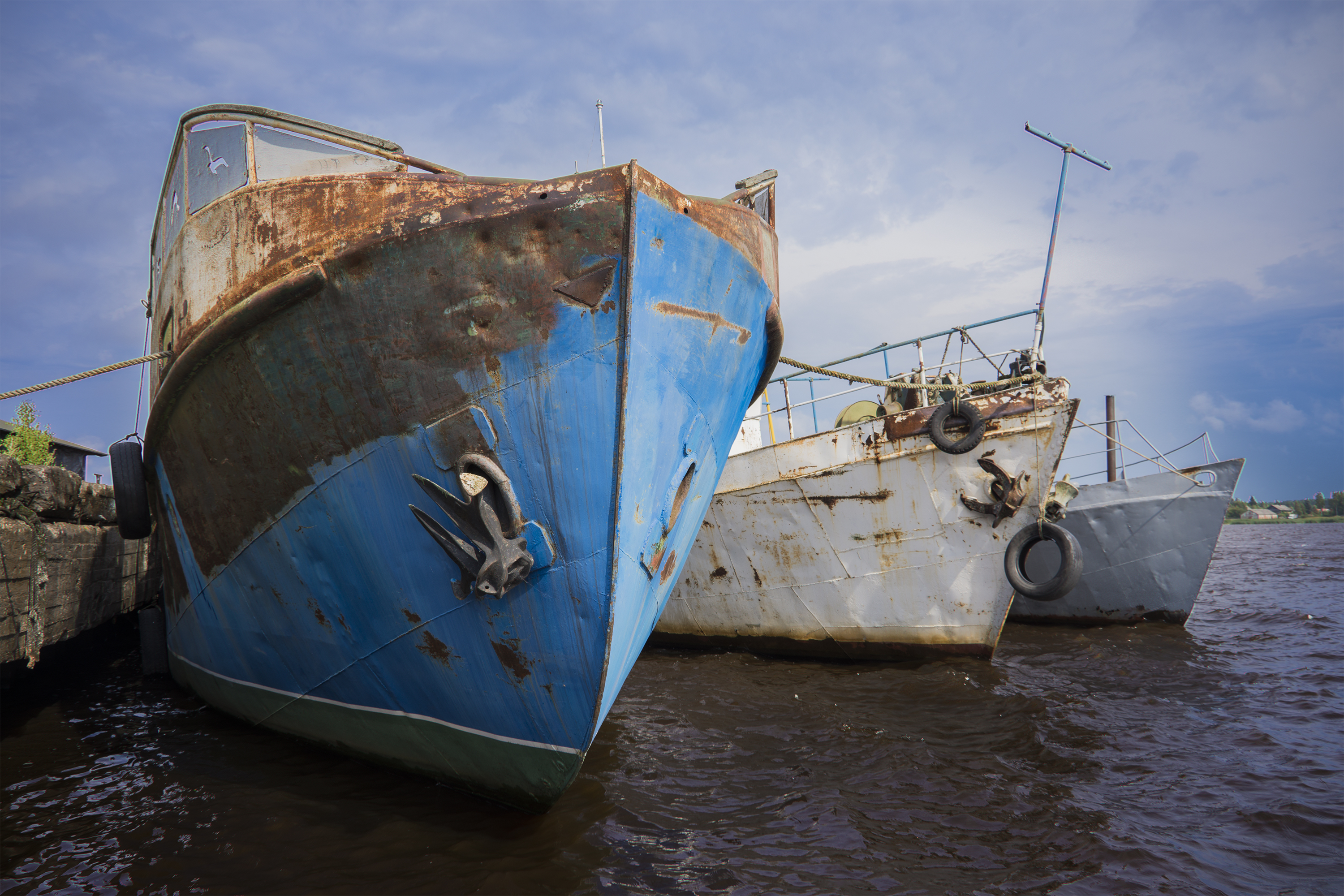 Ржавое трио на берегу реки 🚢 🚢 🚢 Искажение сделано намерено, чтоб показать масштаб корабля, а вот от ХА полностью избавиться не получилось =(