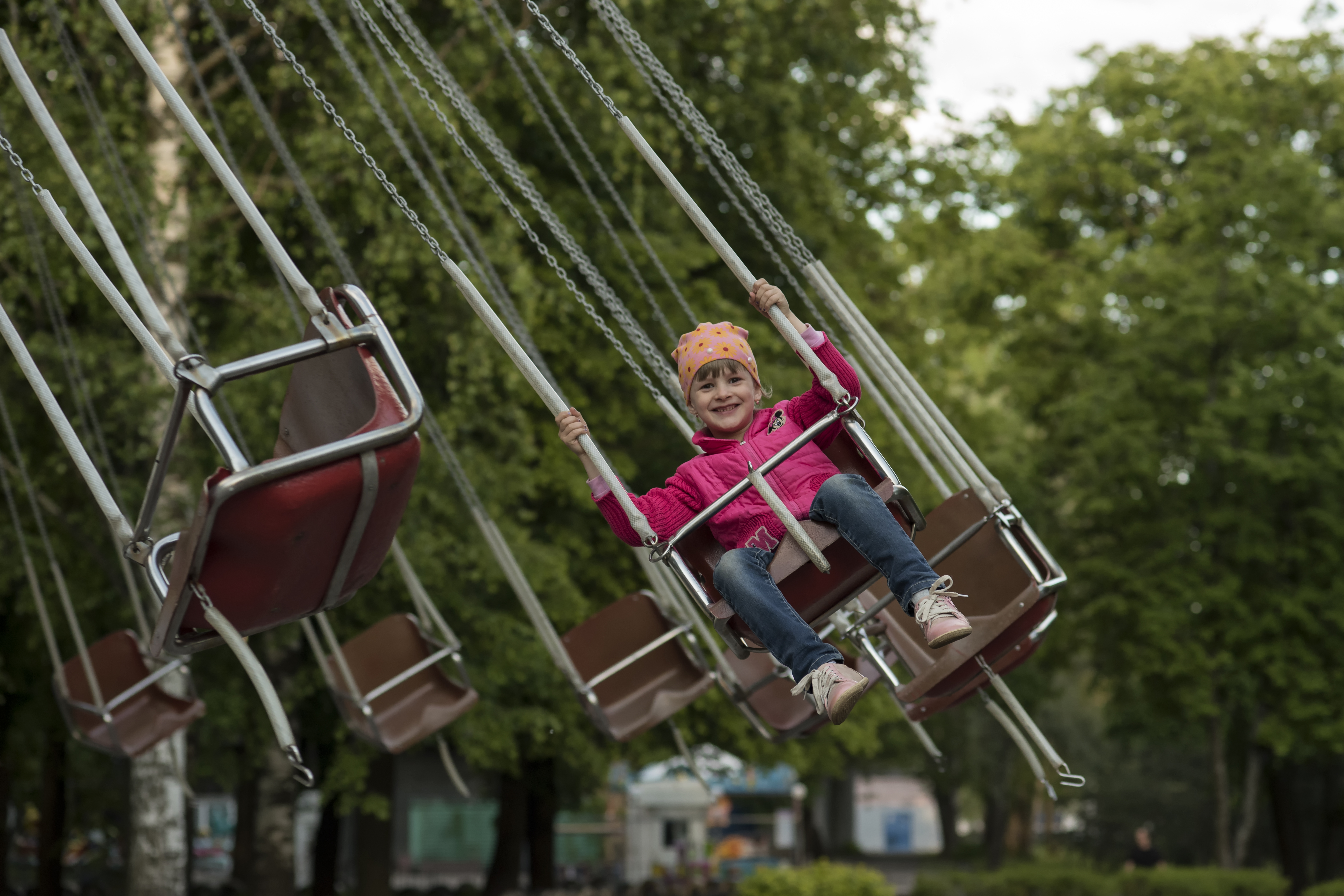 Наклон качелей усиливает ощущение движения , динамики.