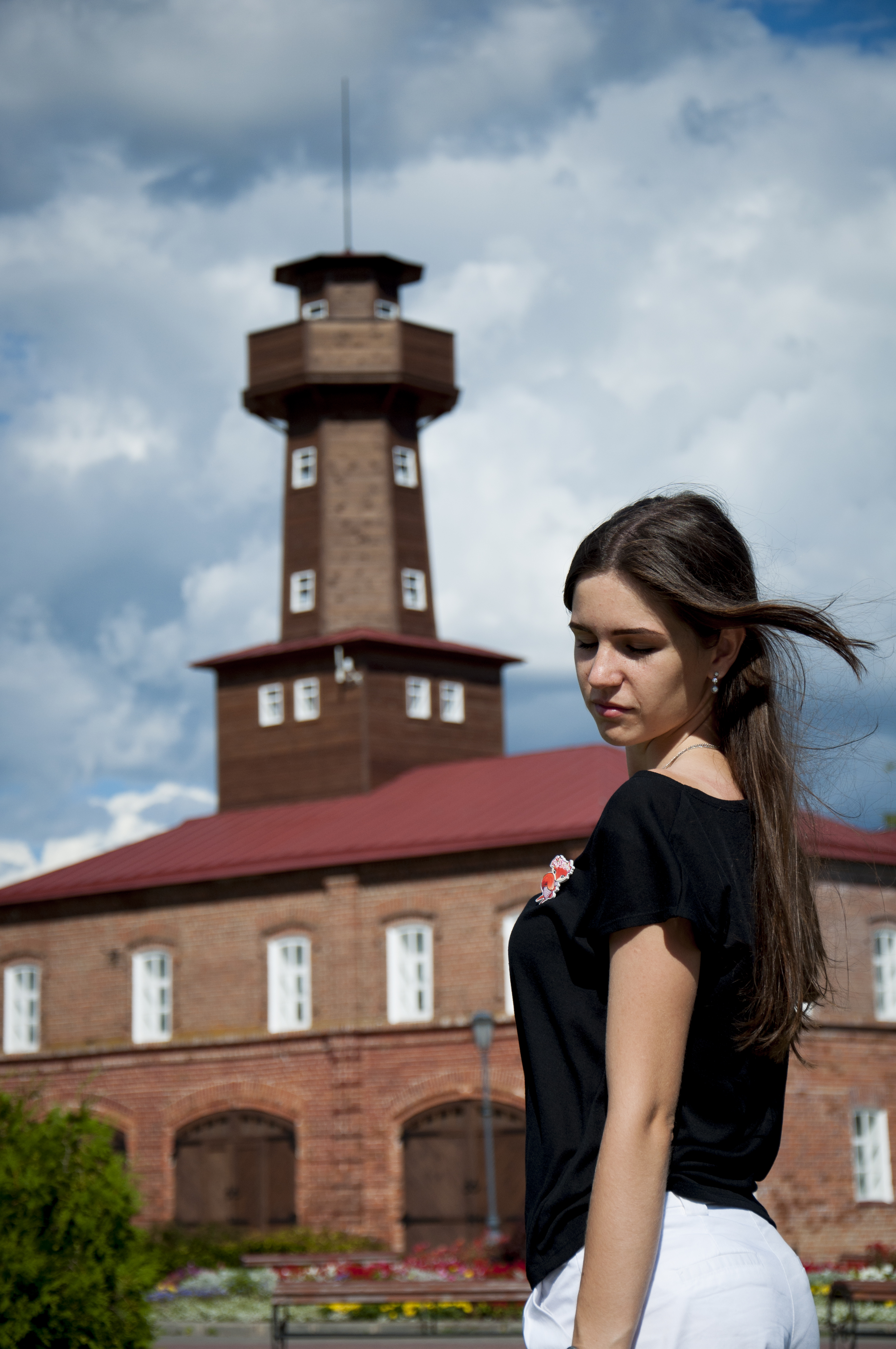 Свет был жестковат. И стоило попросить модель поднять голову, так как оба глаза у неё оказались в тени.