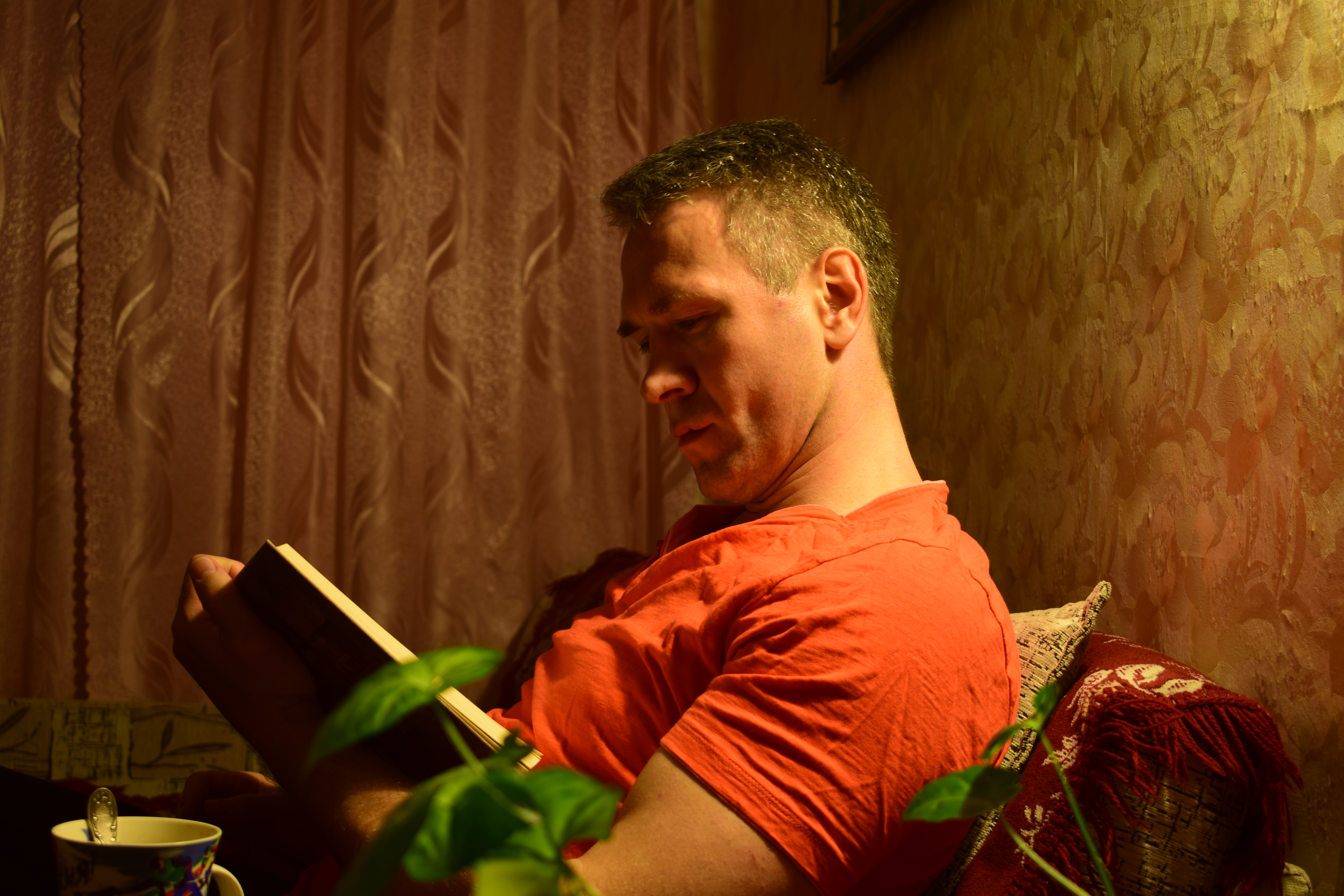 Для чтения свет выбран удачно, а вот для портрета не совсем. Хотелось бы добавить источник света (лампу) или отражатель , направить свет на Ваше лицо.