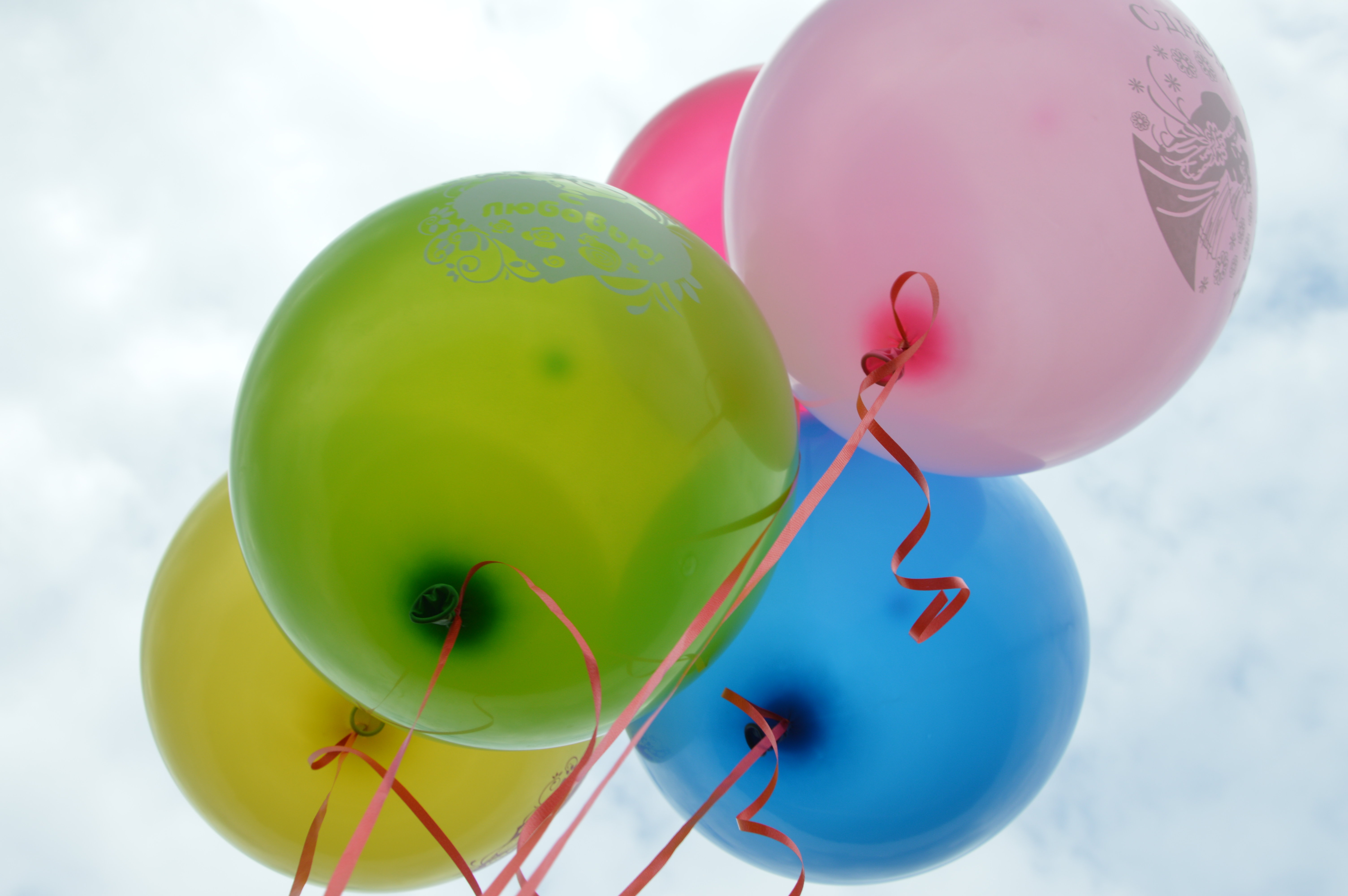 Красивые, яркие шарики! Наклон в диагональ кадра усиливает ощущение динамики, движения.