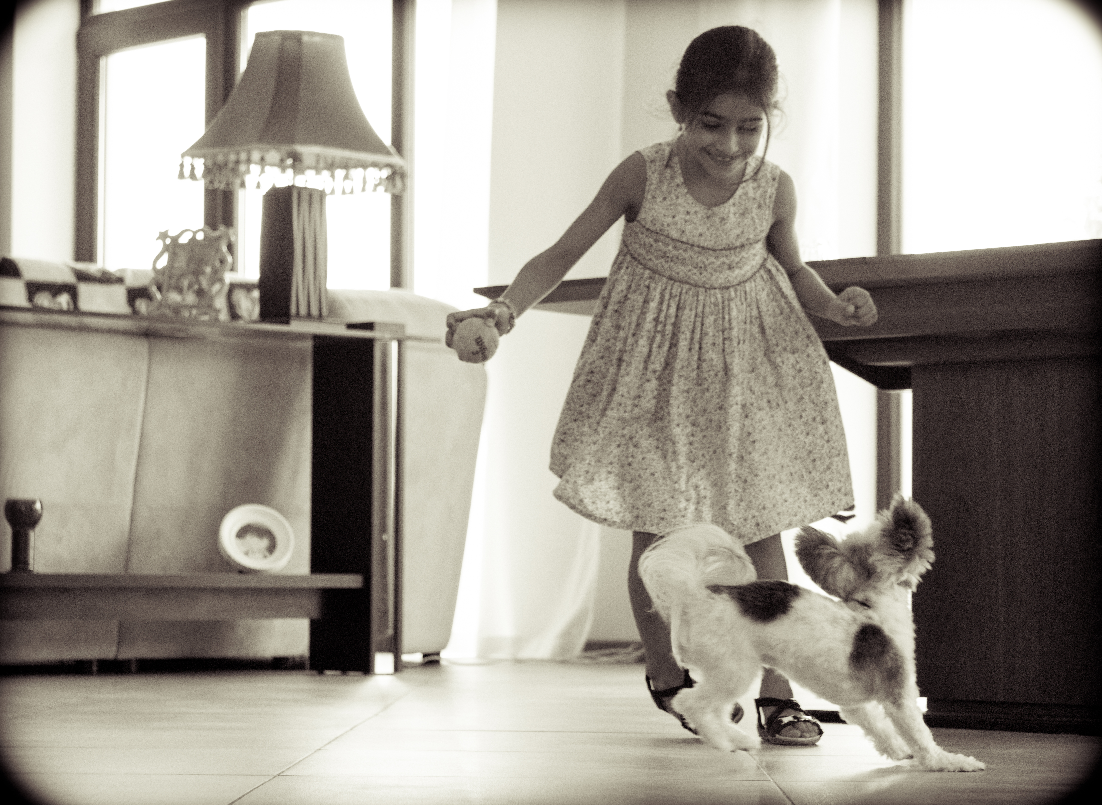 Хороший непостановочный портрет получился, яркий, эмоциональный. Благодаря ЧБ тонированию, снимок напоминает ретро кадр. Нравятся искренние, неподдельные эмоции. Повышение исо в данном случае вполне оправдано, ведь это позволило добиться короткой выдержки и отлично заморозить момент.