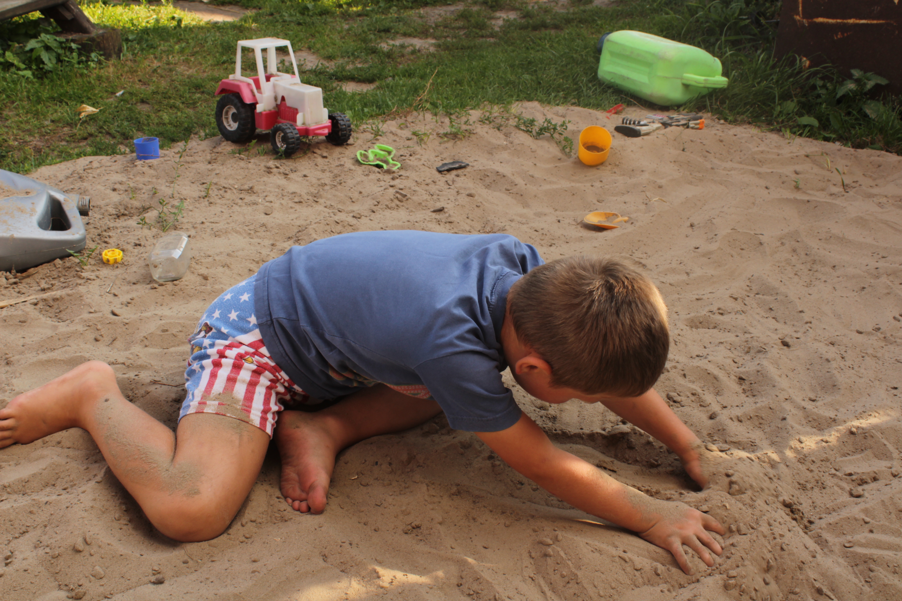 Это мой сын - игры в песке его любимое занятие, он даже и не заметил, что его снимают. (А может и заметил, но не среагировал, был очень увлечён своим миром - он аутист)