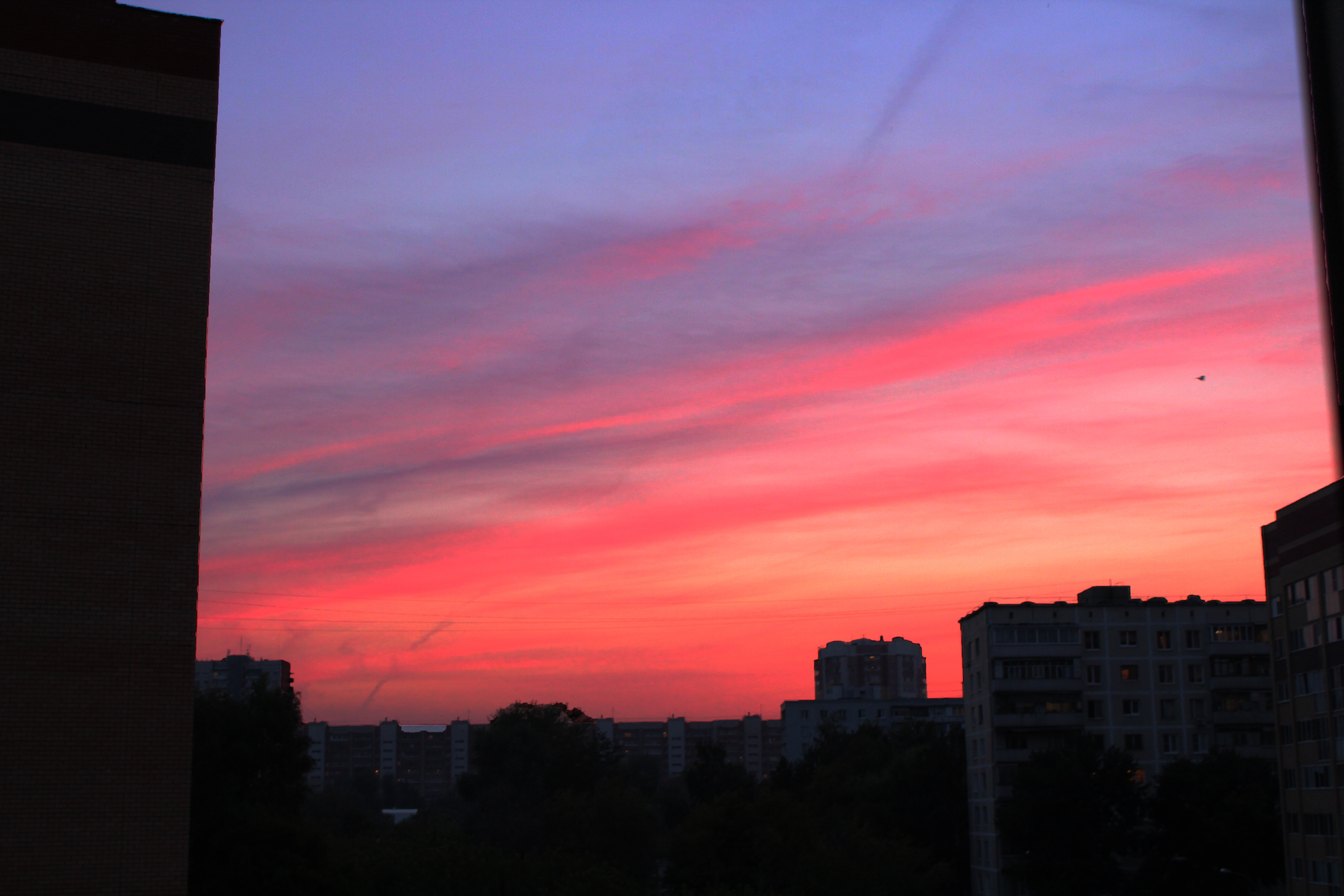 Настройки выбрал по умолчанию, режим пейзажа, ISO сделал меньше и фокус на крае между крышами и небом.