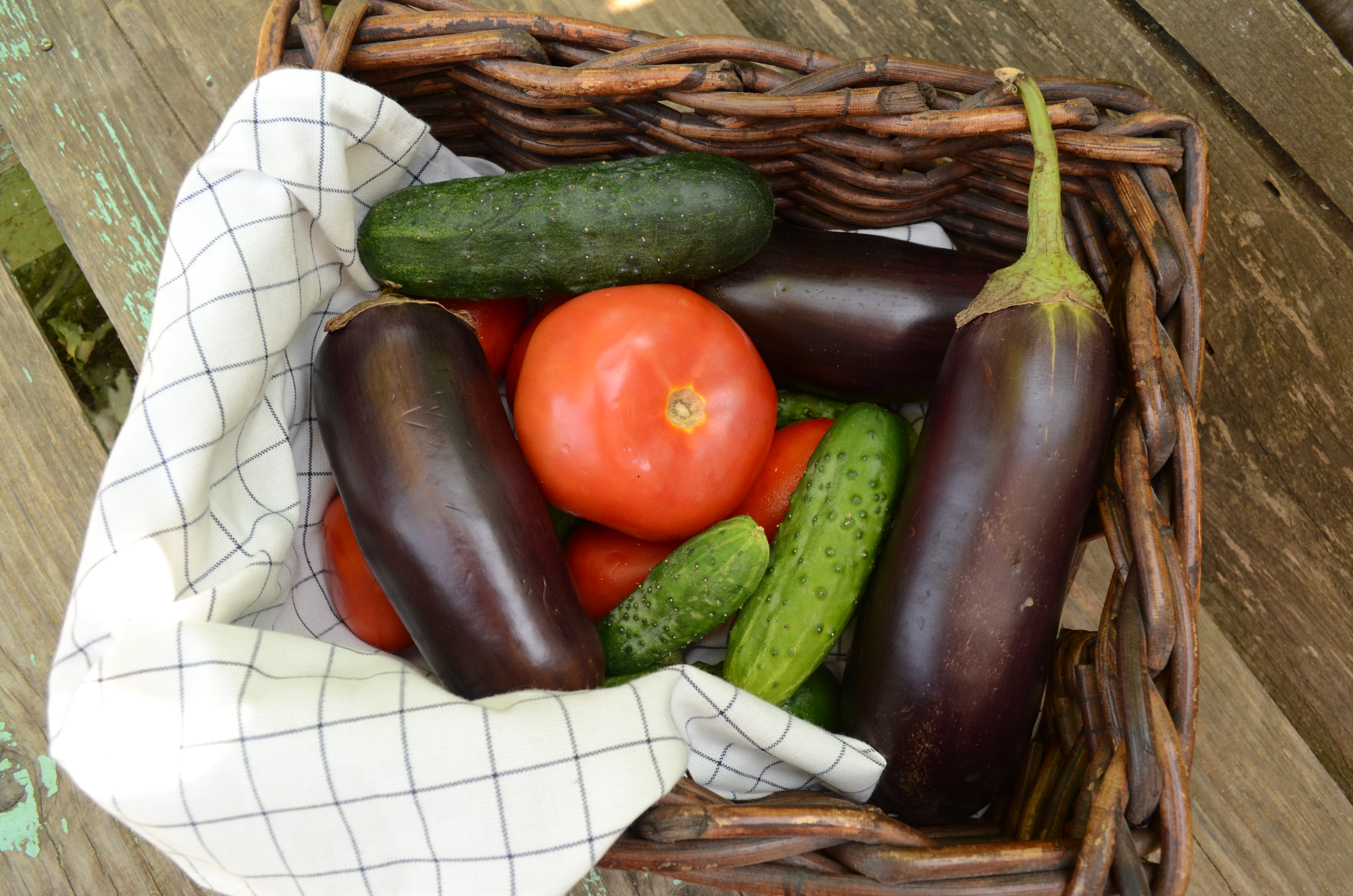 Хорошо выбрали точку съемки и акцентировали внимание на корзиночку с овощами.
