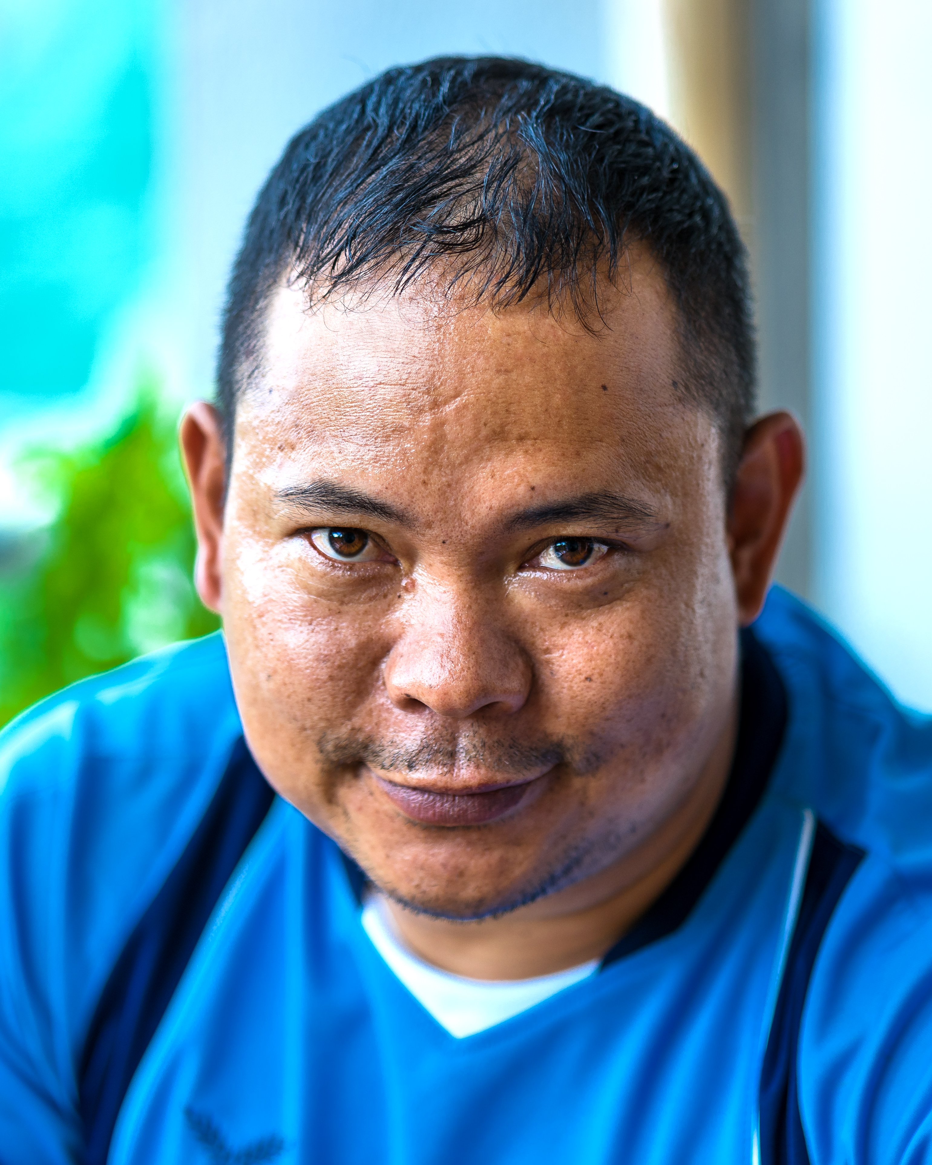 Добрый день. Портрет инструктора по единоборствам в естественном рассеянном свете. Эксперимент с кадрированием, на мой взгляд не плохо получилось. Чуть более усилена фактура кожи чем в предыдущем портрете. 1. ББ, свето и цветокоррекция, а так же резкость в Камера РАВ. 2. В Фотошопе кожа и приглушил блики. Тон не выравнивал, считаю тут это не нужно. 3. Немного поработал над белками и радужной оболочкой глаз.