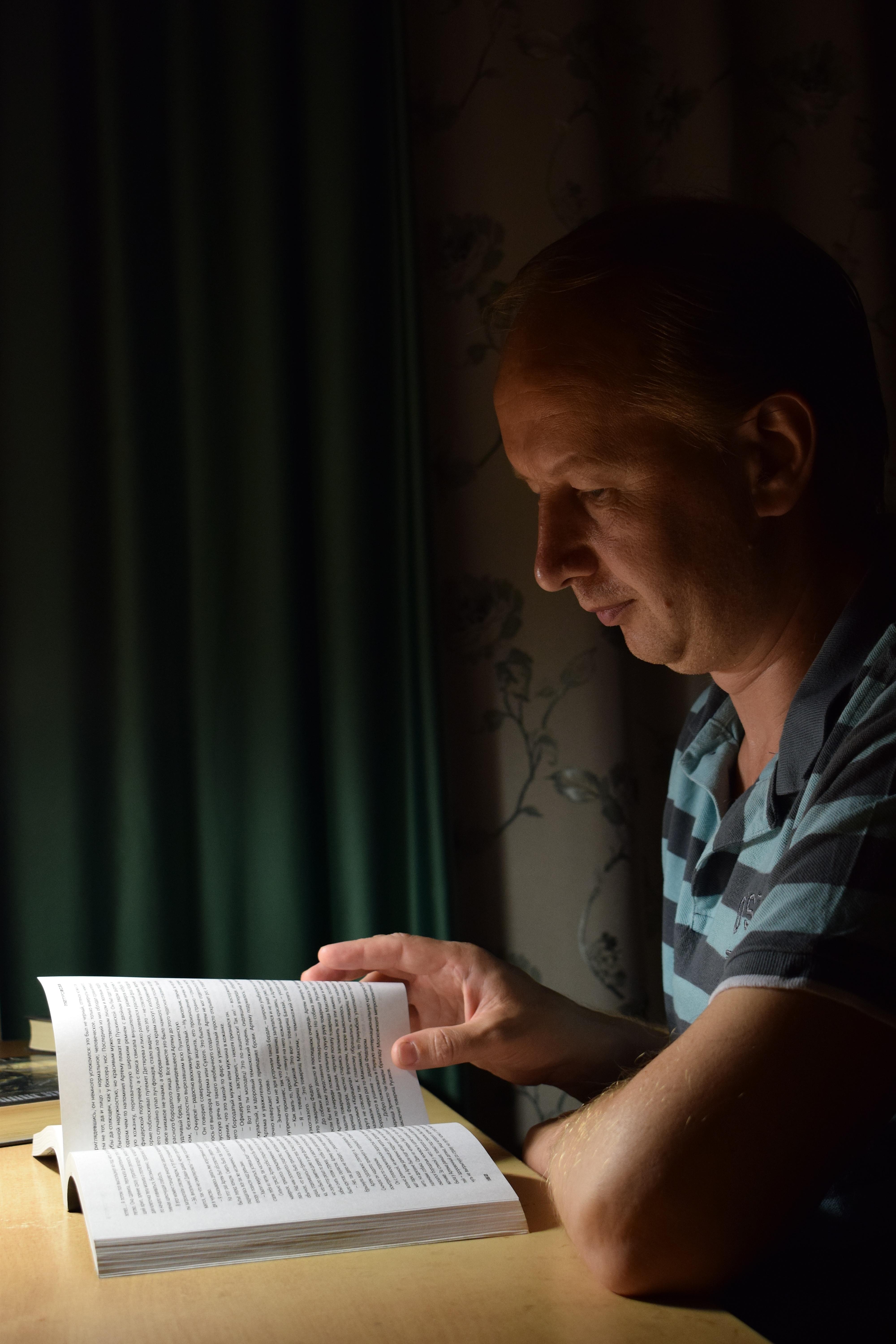 Отличная работа! Вы передали уют, гармонию. Отлично поработали со светом. Верно отодвинули настольную лампу, свет получился достаточно рассеянным. При этом эмоции героя достаточно читаются.