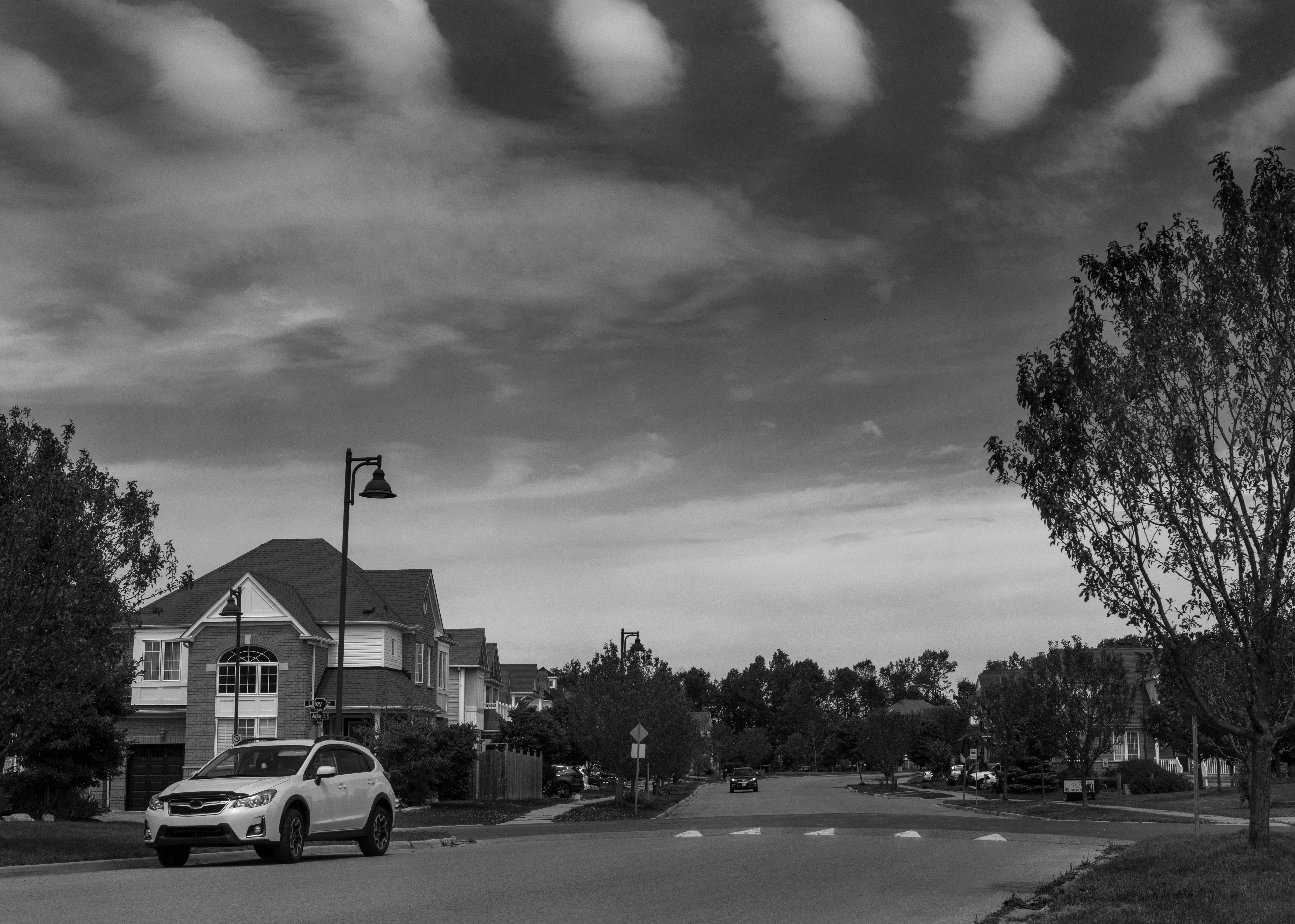 Ну очень уж необычные облака были , которые сочетались с "зеброй" на дороге. Хотела оставить в цвете - голубое небо. но решила сделать в ч.б.
