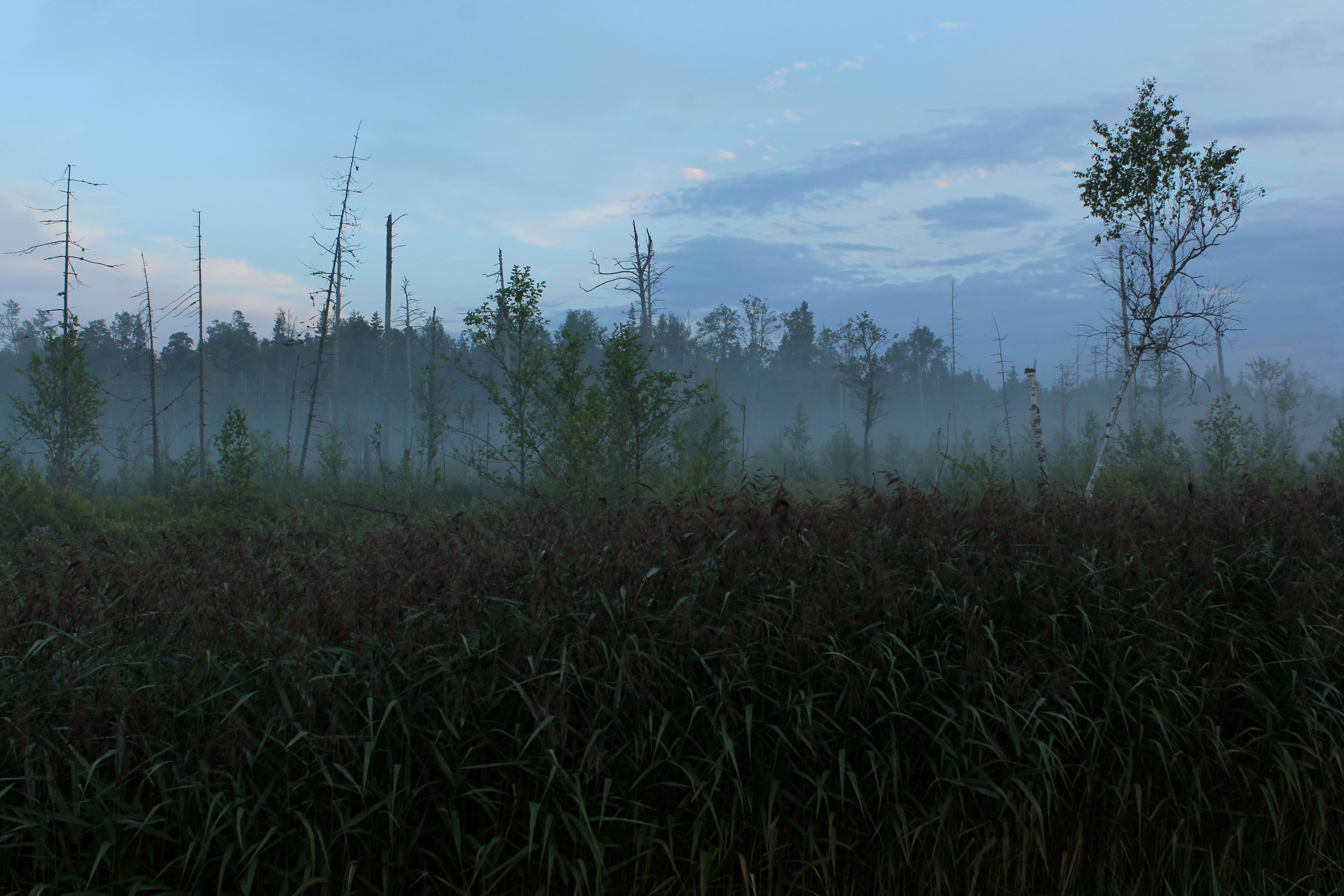 Заниженная точка съемки увеличивает передний план, взгляд от него перемещается в глубину кадра. Туман делает снимок более глубоким.