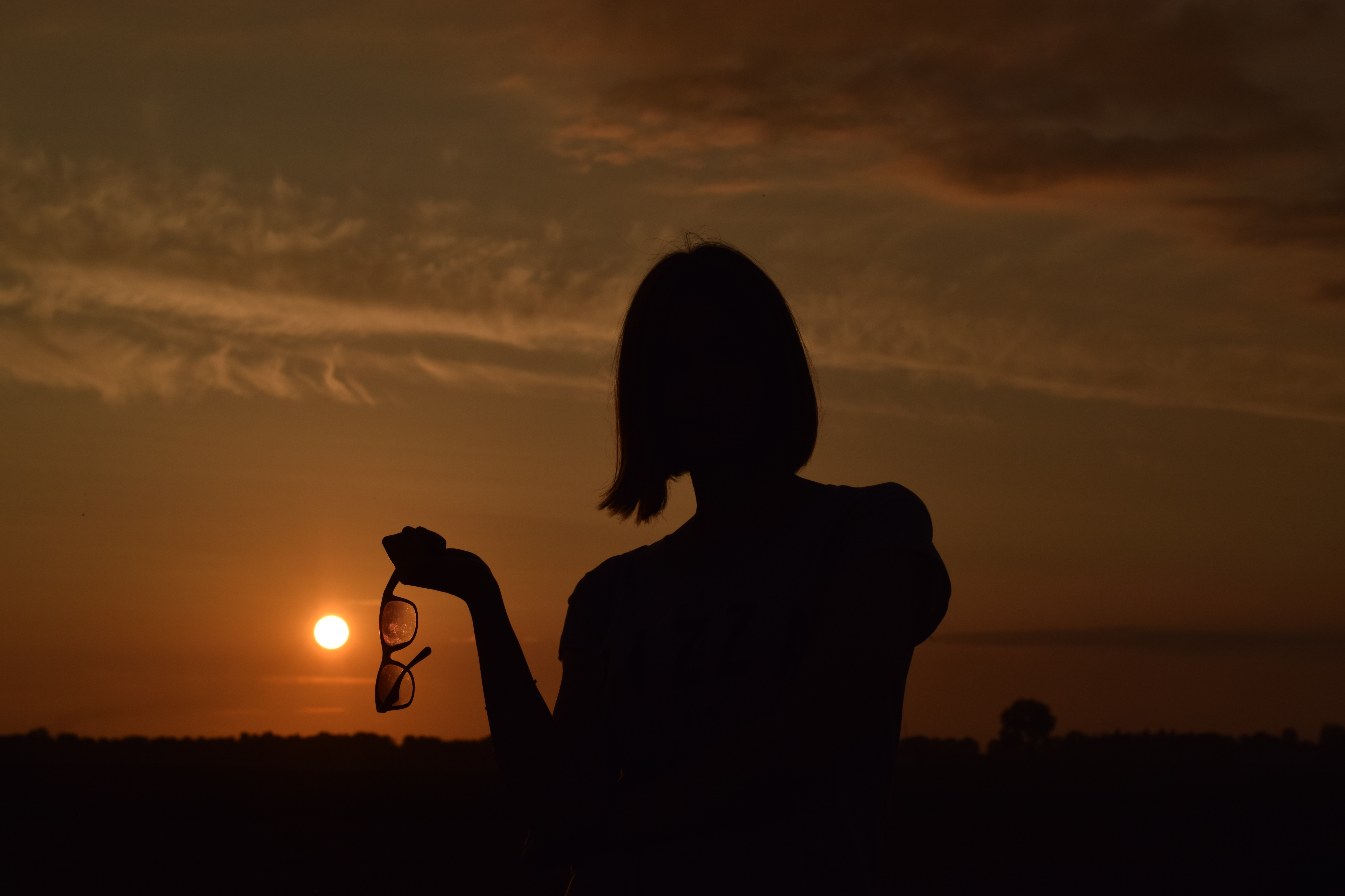 На таком фоне отлично выделяется силуэт модели с очками в руках.