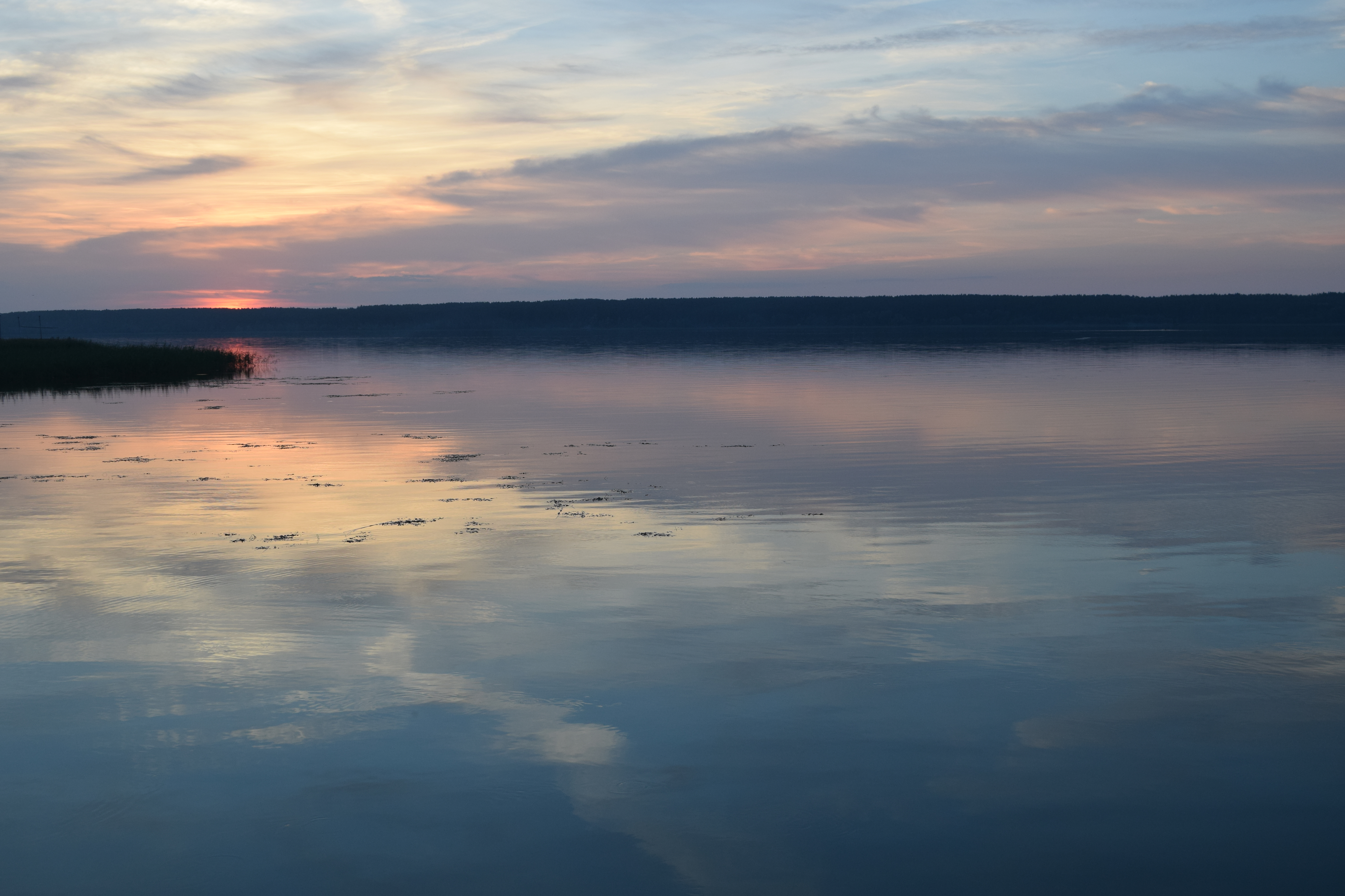 Кадр сделан в удачное время, есть состояние природы, красивые закат, но кадр немного пустоват, не хватает переднего плана. В будущем старайтесь найти какой-то интересный объект на переднем плане, который будет привлекать внимание зрителя. К примеру здесь были бы интересны кувшинки, или какое-то растение (1).