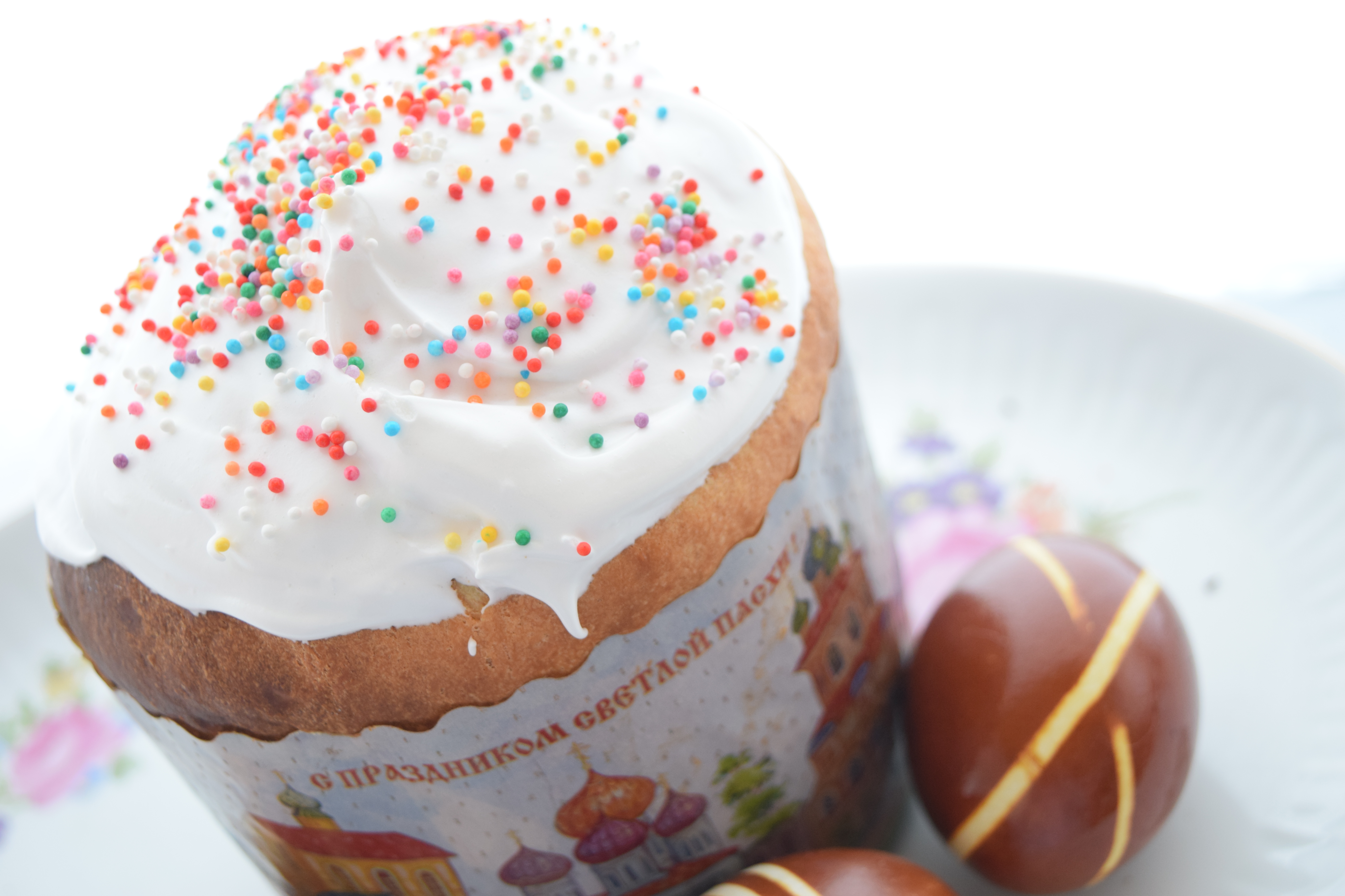 Камеру сфокусировали на верхнюю часть кулича.