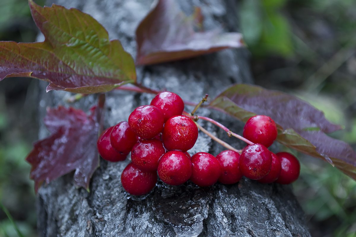 f 5.6 ISO 200 55 мм 1/60 хотелось воплотить осеннее настроение, вернее одно из настроений, воплощений, потому что осень многогранна и многолика. сейчас холодно, слякотно, дождливо... мокрые, ягоды, лежащие на холодном мокром стволе дерева.