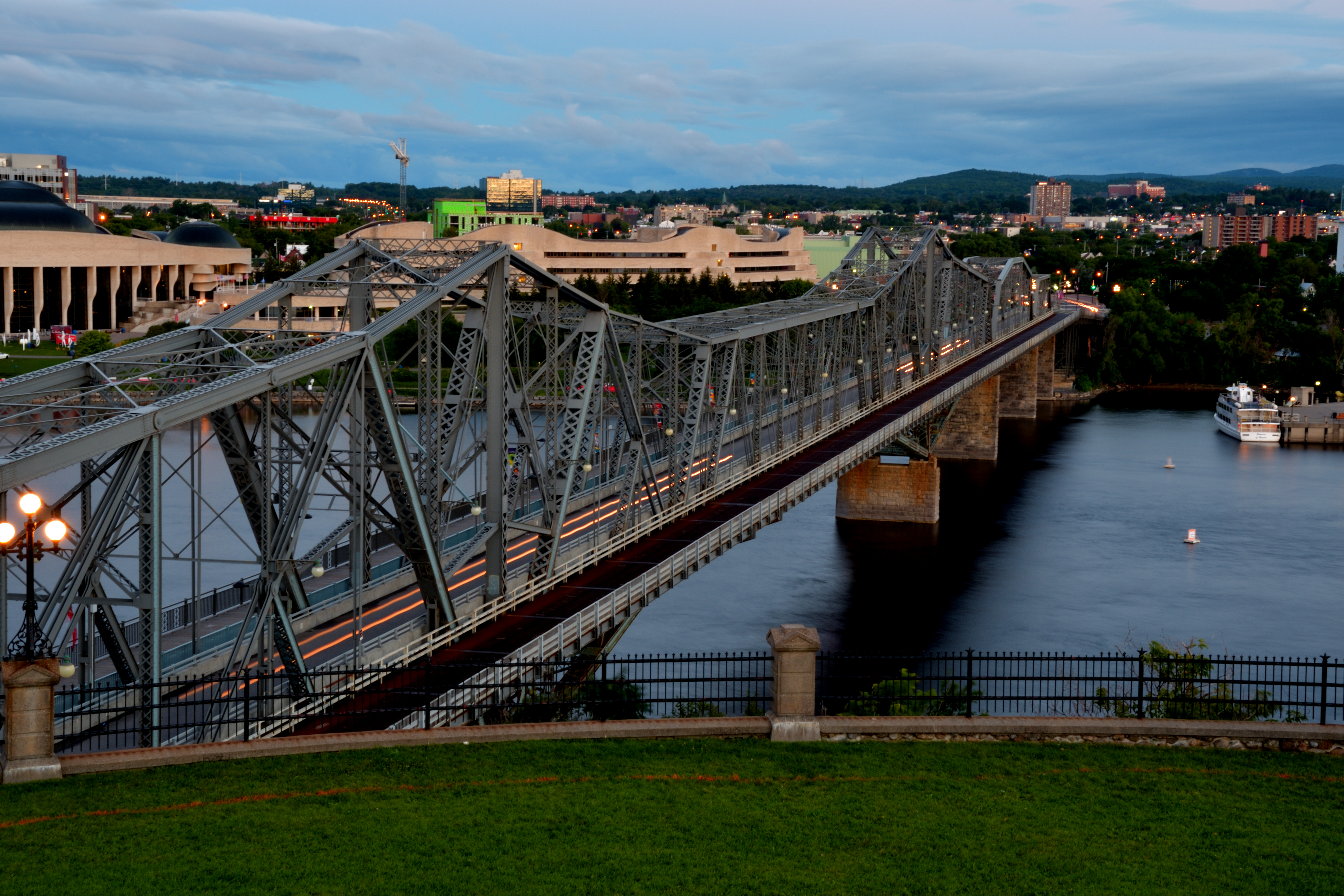 Мост через реку Оттава. Съемка в утренние часы. Хотел показать росчерки от фар движущихся по мосту машин.