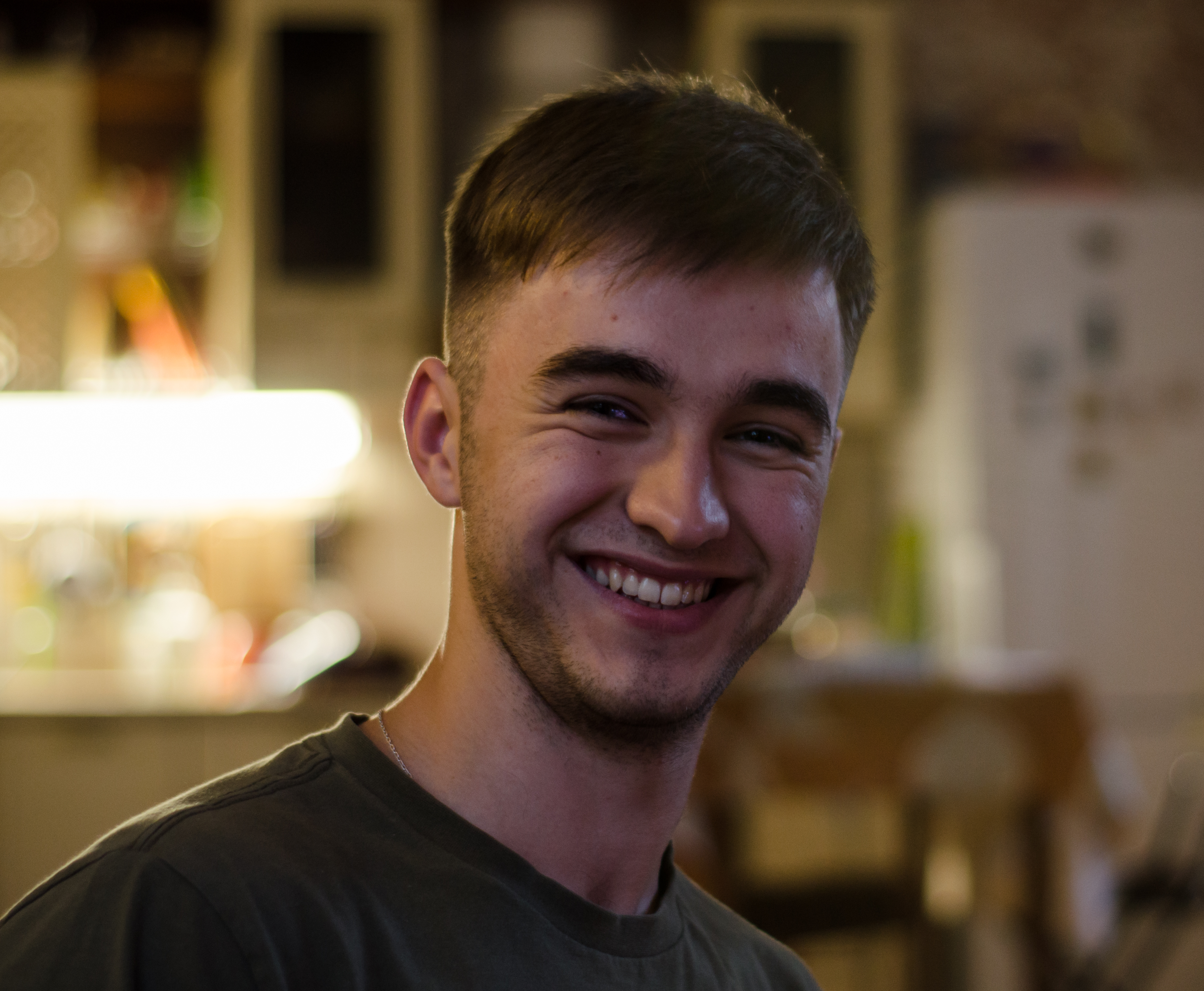 Удачную эмоцию поймали в объектив! И фон размыт при малой глубине резкости - верно выбрали фокусное расстояние объектива. Хорошо, что прикрыли диафрагму до f2, это дало возможность показать лицо героя в резкости целиком.