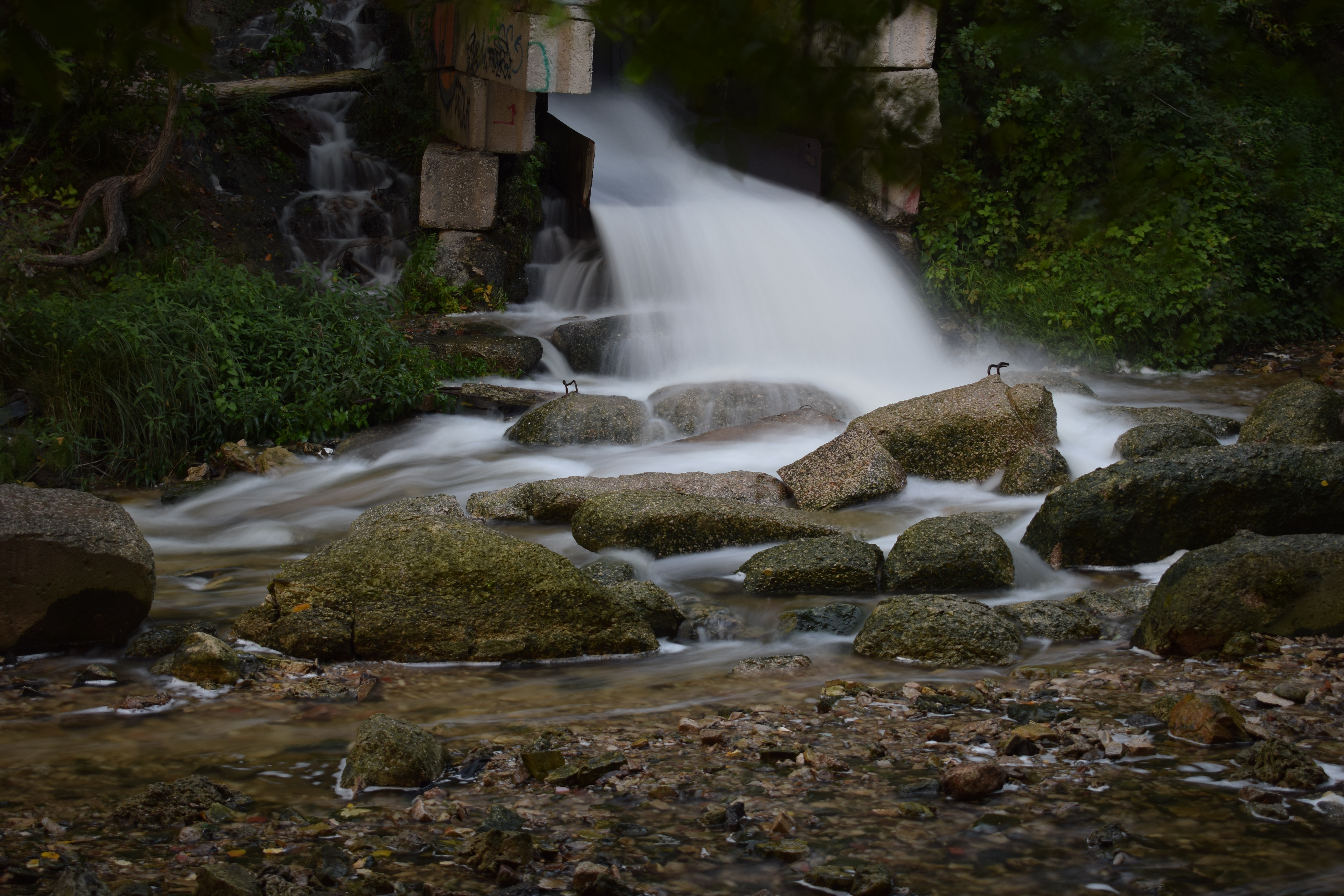Получился отличный снимок, прекрасно иллюстрирующий задание. Параметры и время съемки выбраны очень удачно, Длительная выдержка достаточно сильно размыла воду, но при этом сохраняется детализация. Вода не превратилась в сплошной туман. Композиционно кадр так же удачно сделан, водопад занимает место в правом части кадра, и оставляет достаточно мест для убегающего потока воды.