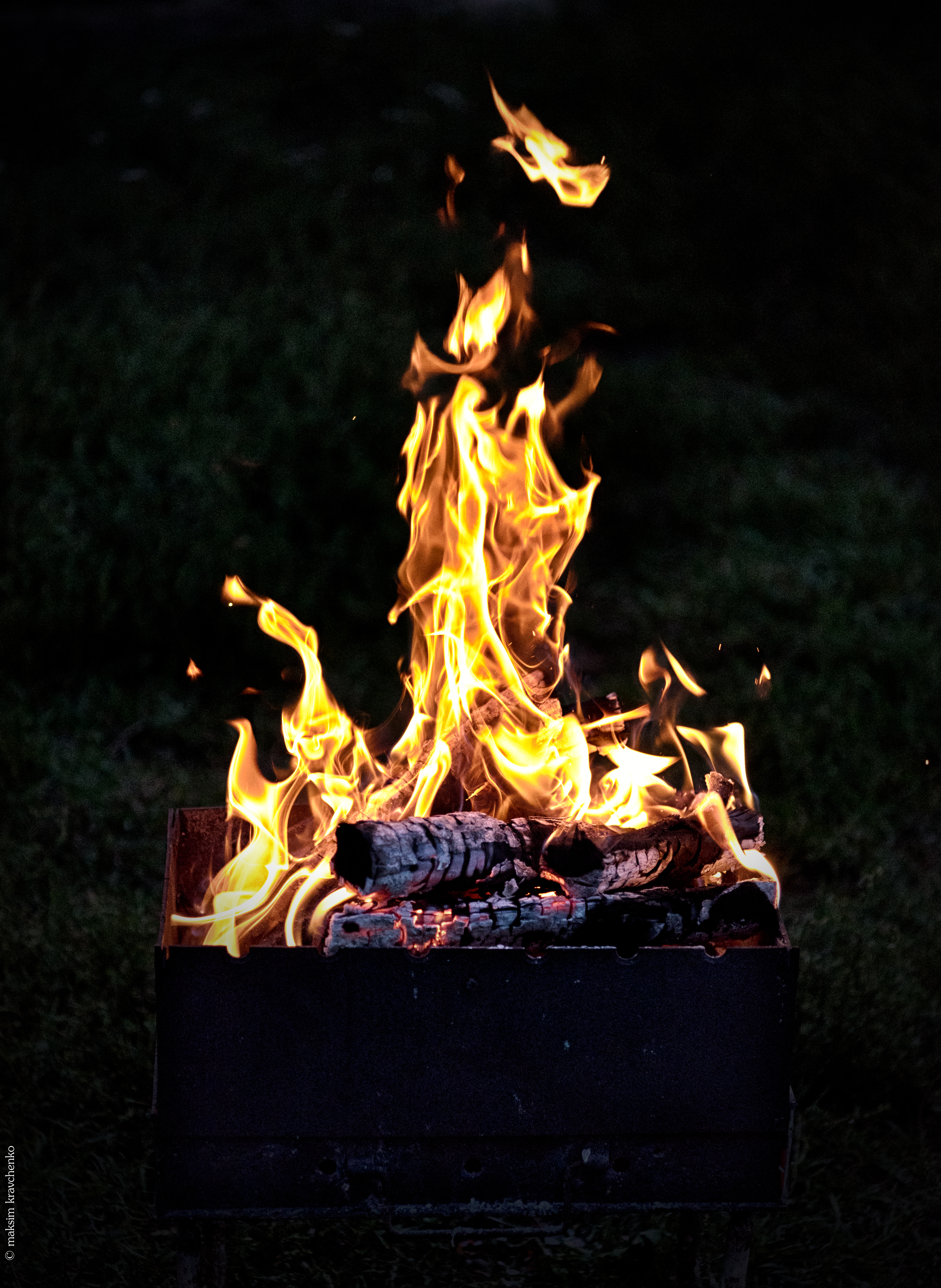 Огонь от горящих дров мангала, как мне кажется, отлично передает неповторимые формы света