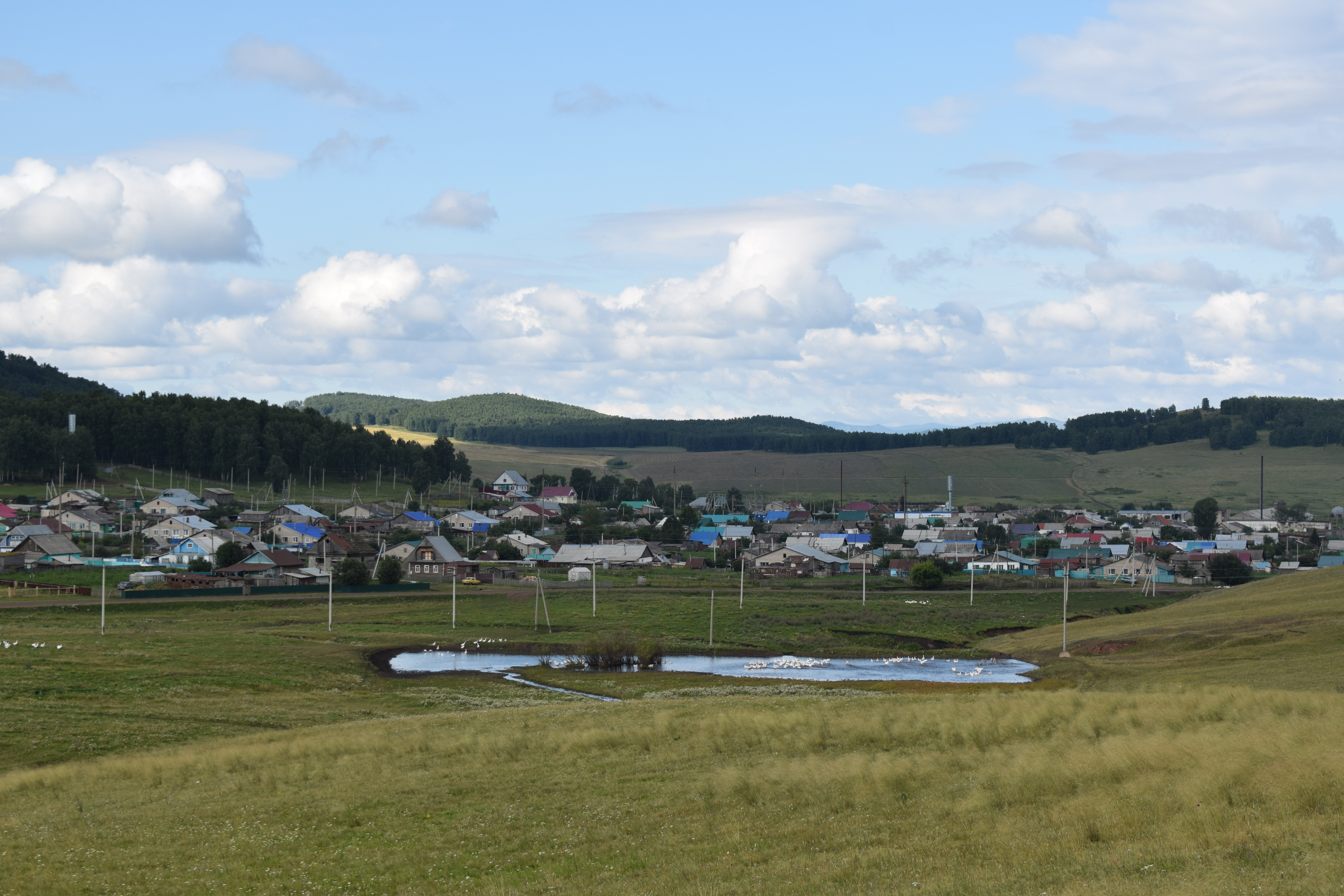 На фотографии изображена небольшая деревня в Башкирии, которая находиться чуть-чуть в низине между небольшими горами. Фотография сделана с небольшой возвышенности, но к сожалению я не помню в каком режиме она сделана.