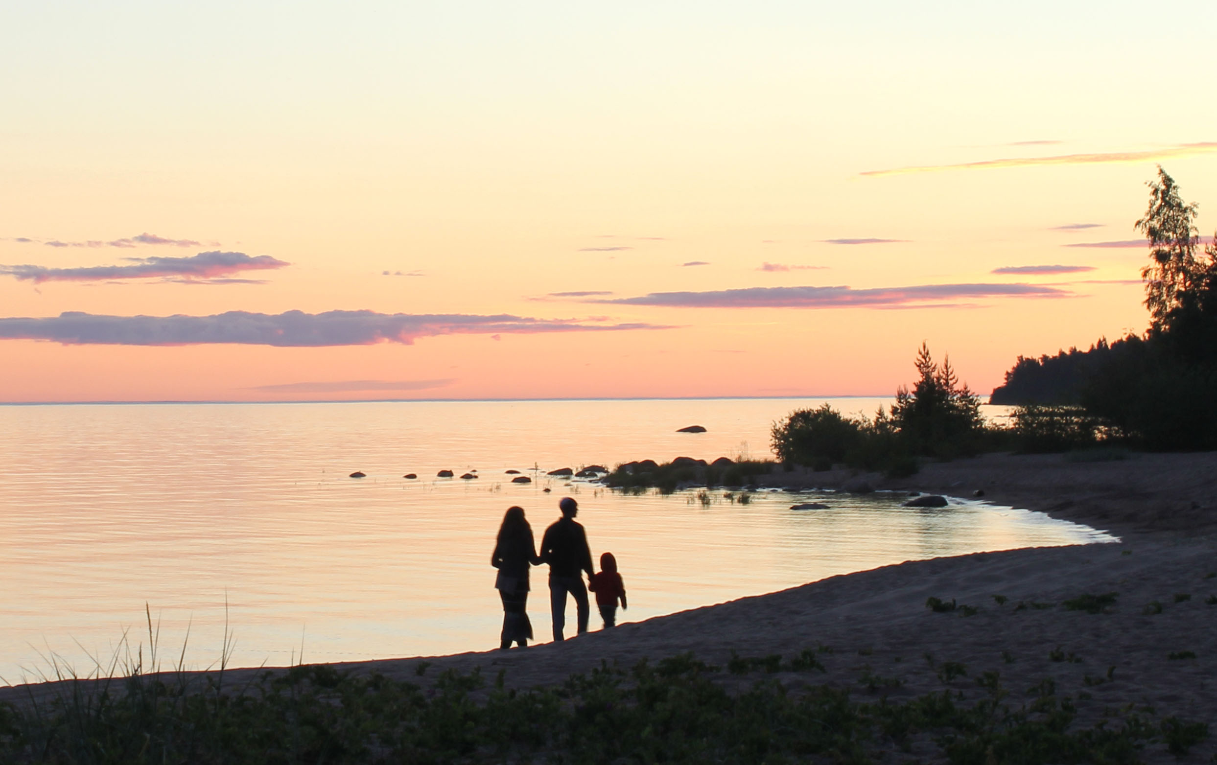Удачный поймали момент, силуэты героев отлично выделяются на фоне более яркой поверхности озера. Приятные естественные цвета и большая глубина резкости, камеру настроили оптимально для пейзажной съемки.