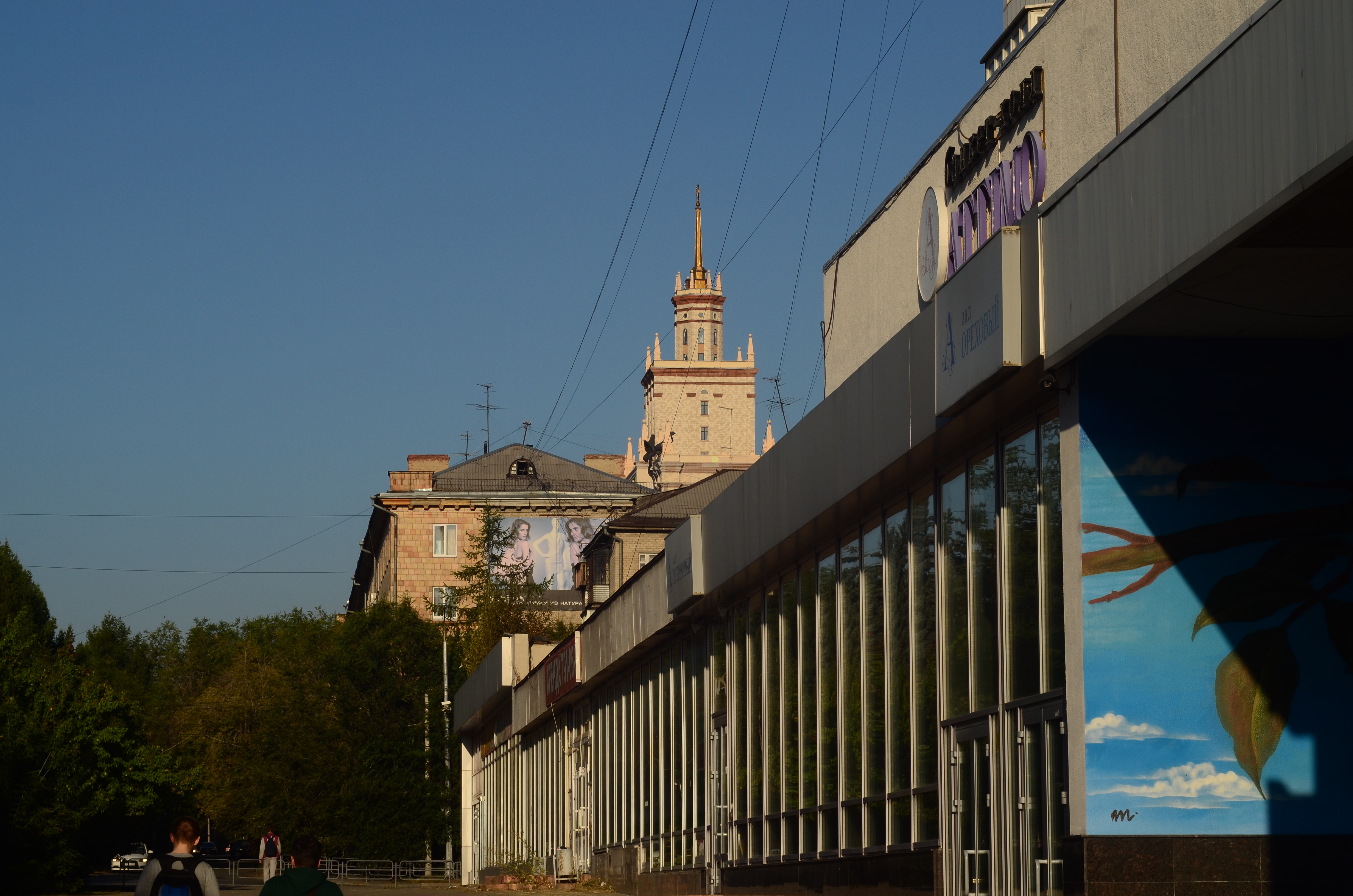 об этом снимке интересно узнать Ваше мнение. улица города Челябинск. Меня привлекает в этом снимке перспектива переднего плана,пика здания находящегося чуть левее центра кадра,теплый свет восхода солнца и два человека идущих впереди придают живости снимку.