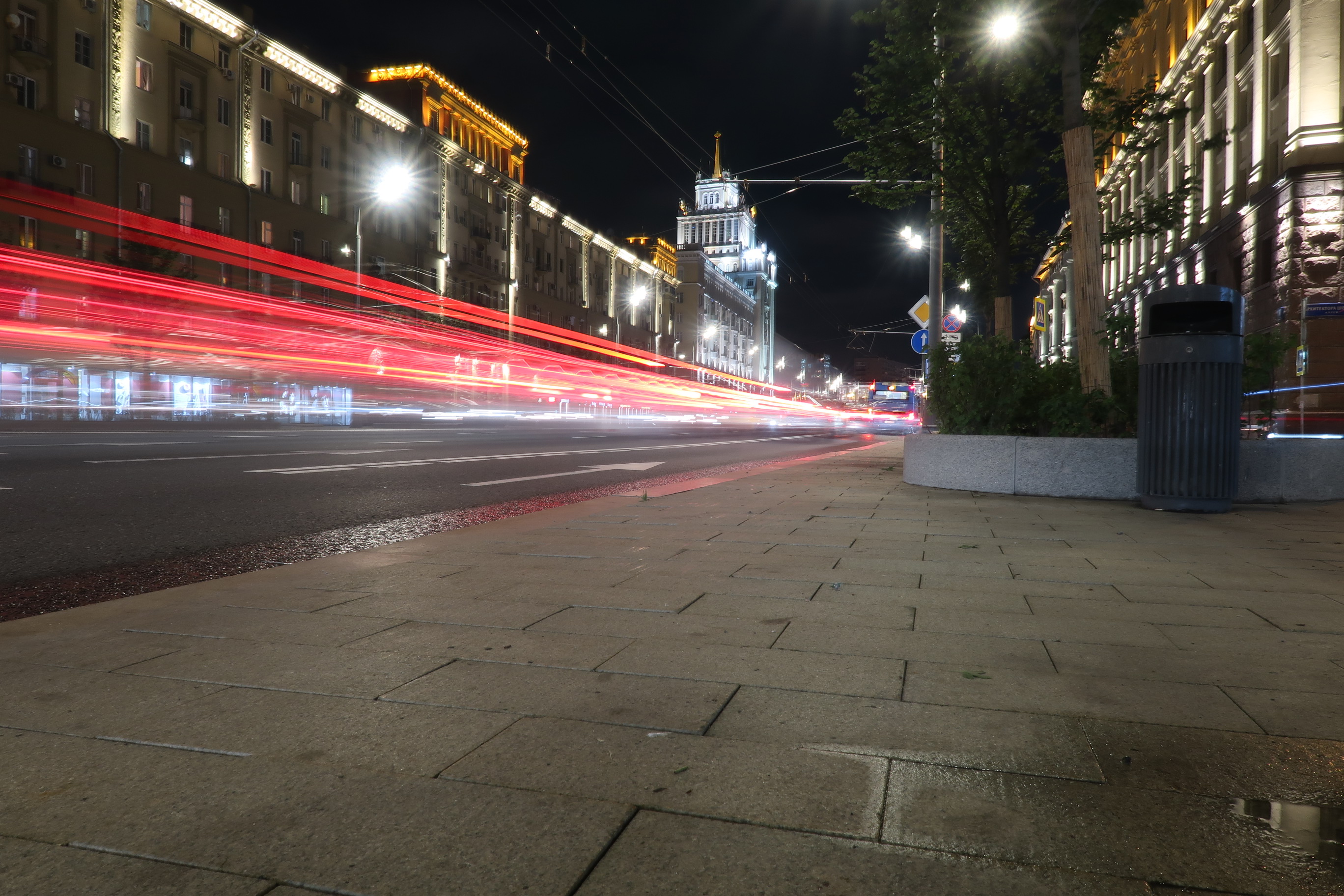 Сделала фотографию по дороге с работы домой. Москва, Садовое кольцо, недалеко от метро Маяковская. Штатив пока не приобрела, фотоаппарат стоял на бордюре. Выдержка 15 с.