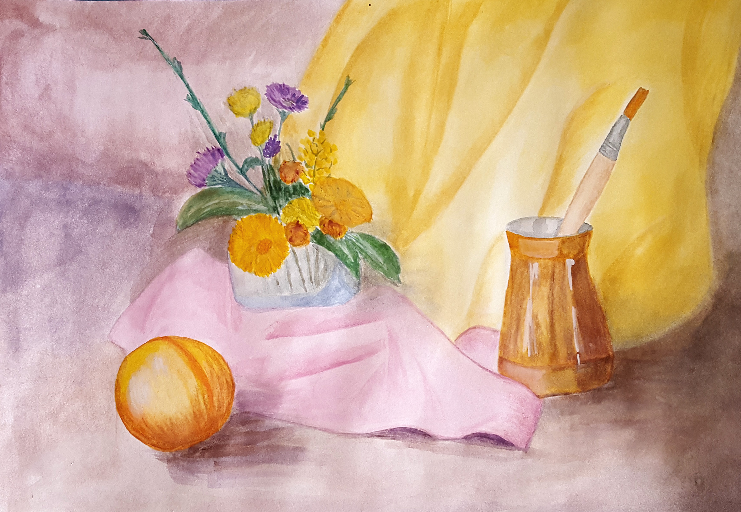 На будущее имейте ввиду, что разницу между светом и тенью на ближних предметах можно еще усиливать. То есть тени делать еще темнее. Так объем предмета, да и сам предмет будут более выразительными.
