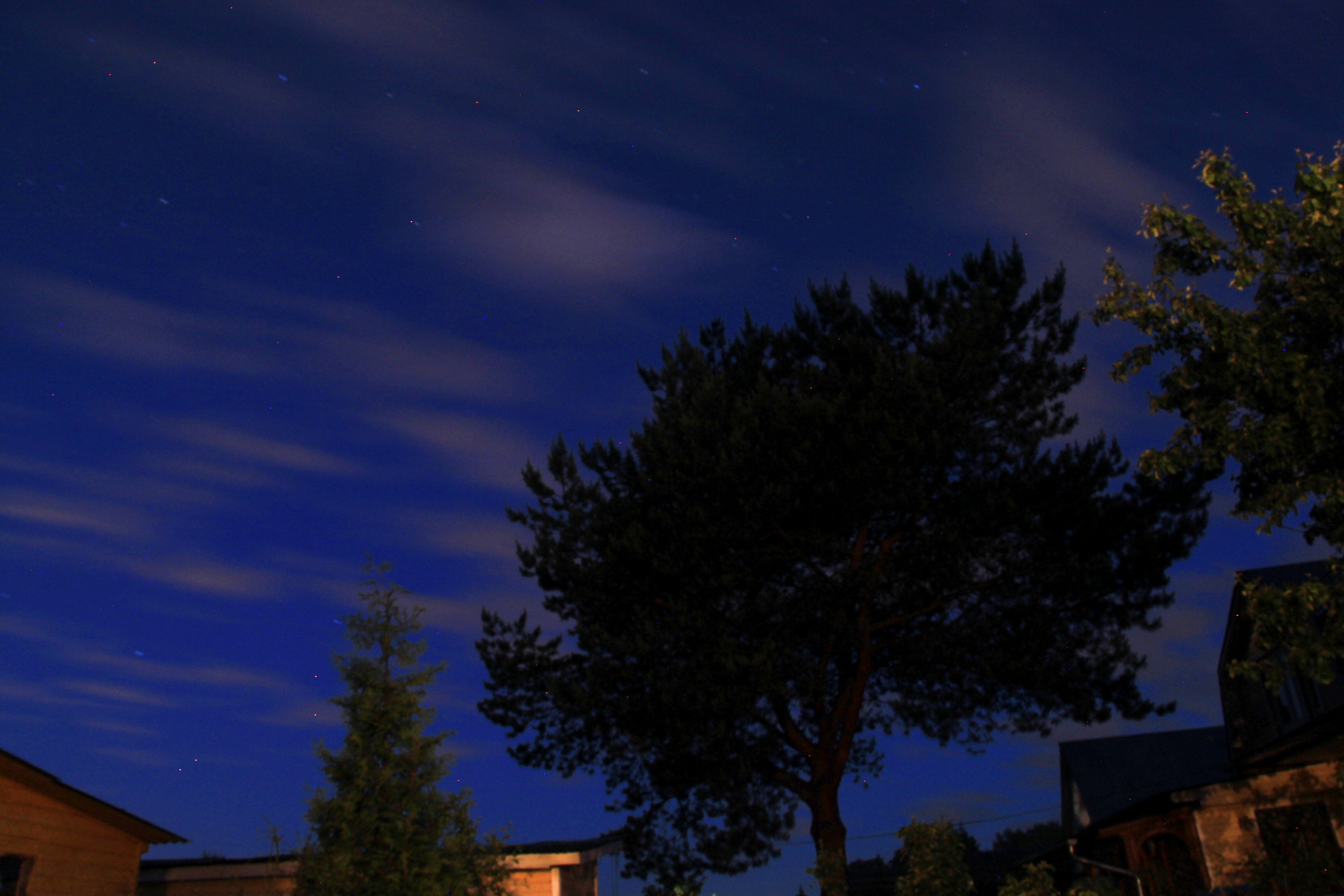 Силуэты деревьев отлично выделяются на фоне ночного неба.