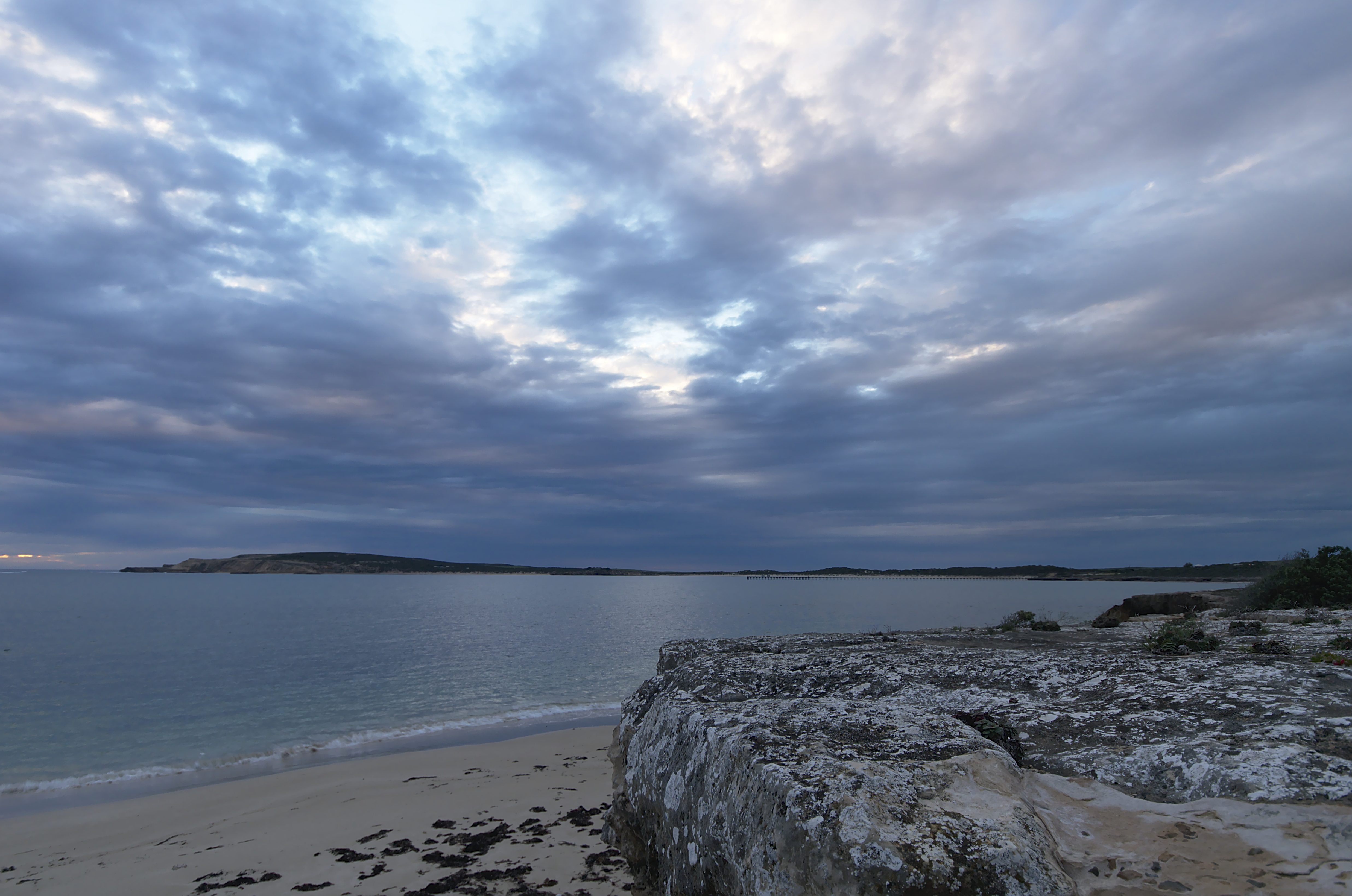 Здравствуйте, съемка с рук. Старался скомпоновать снимок так, чтыбы и линию границы воды и берега использовать, и камень на передний план поместить, ну и, конечно, небо