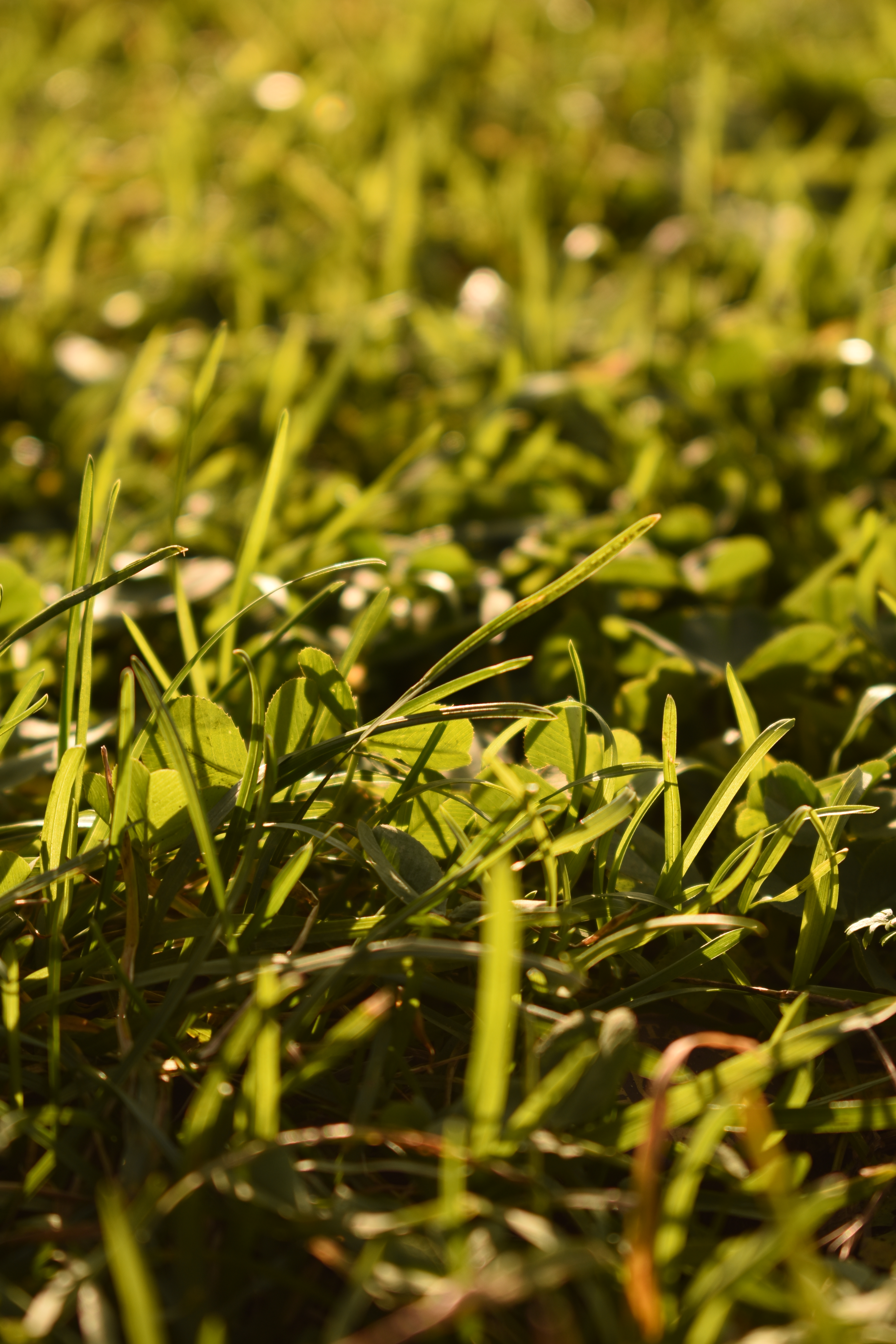 Диафрагма приоткрыта и использовано длинное фокусное расстояние объектива, поэтому глубина резкости получилась маленькая, размытый фон усиливает внимание на траве в переднем плане.