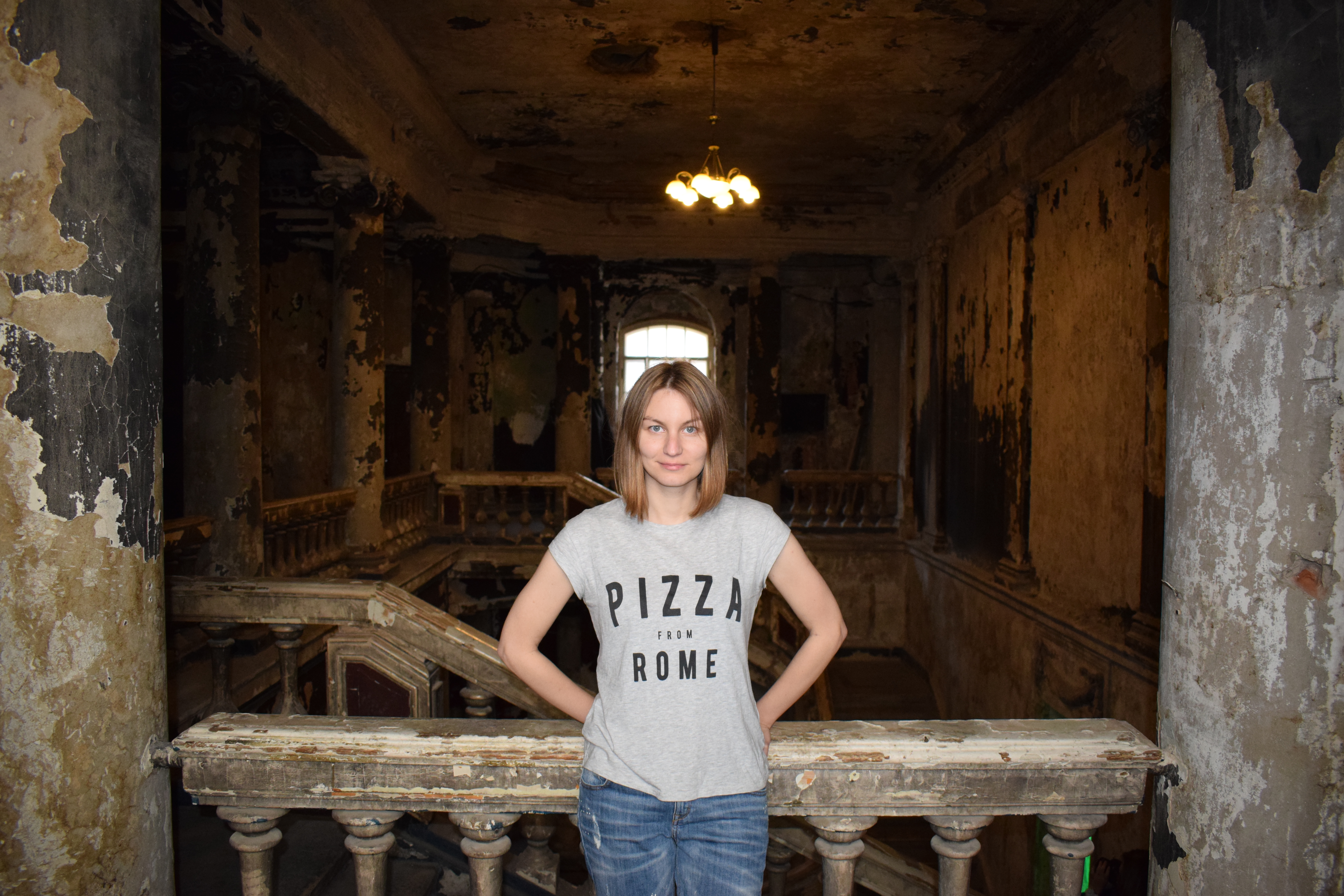 Фотография в жанре портрета. Образ реалистичный. В интересном интерьере. С симметрией форм, что притягивает подсознательно, с реалистичным цветом, которого добились при помощи коррекции баланса белого, но это было не обязательно, ведь использовалась вспышка.