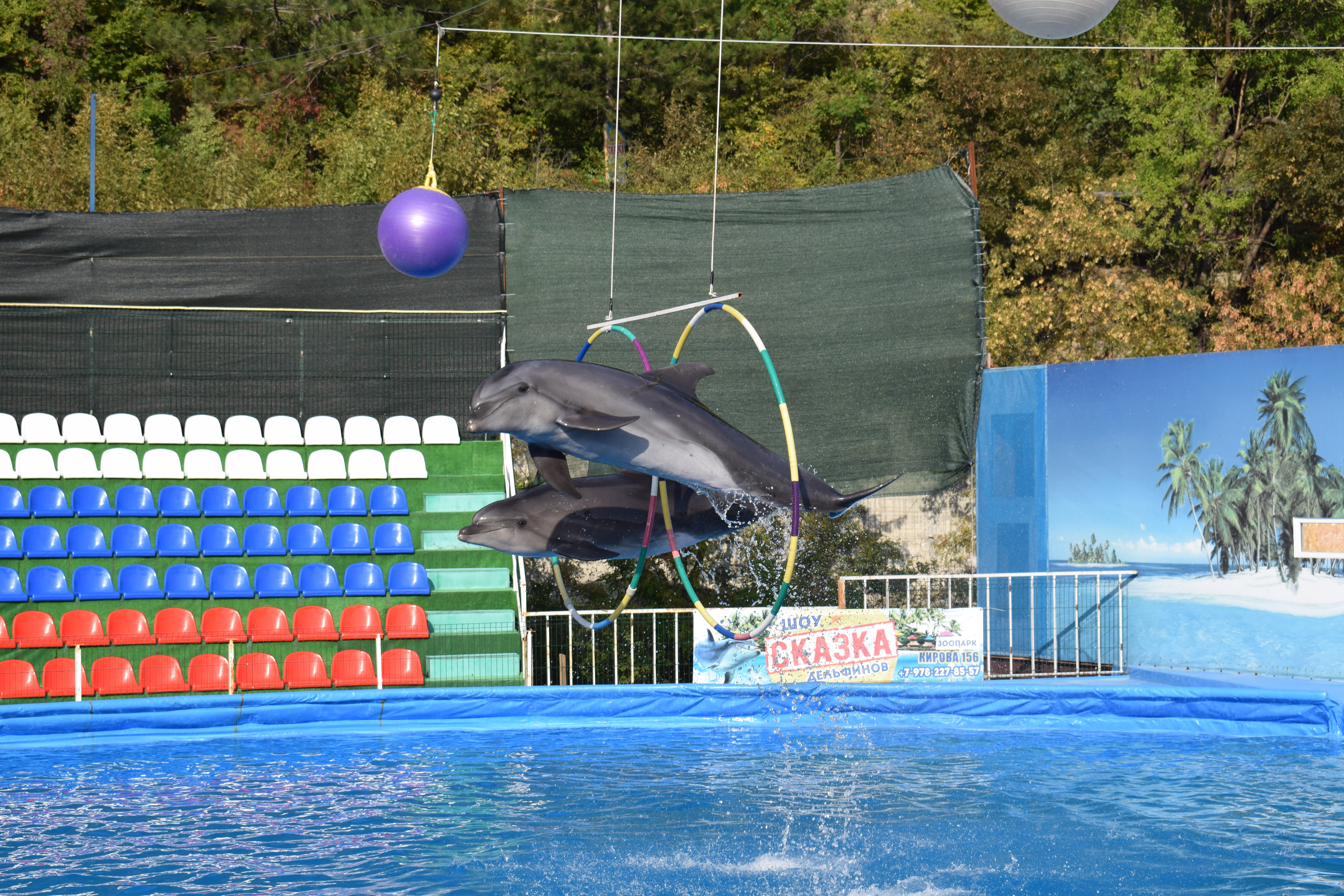 На фотографии хотелось сделать акцент на прыжке дельфинов, а так же подобрать более удачный вид взгляда на зрителя