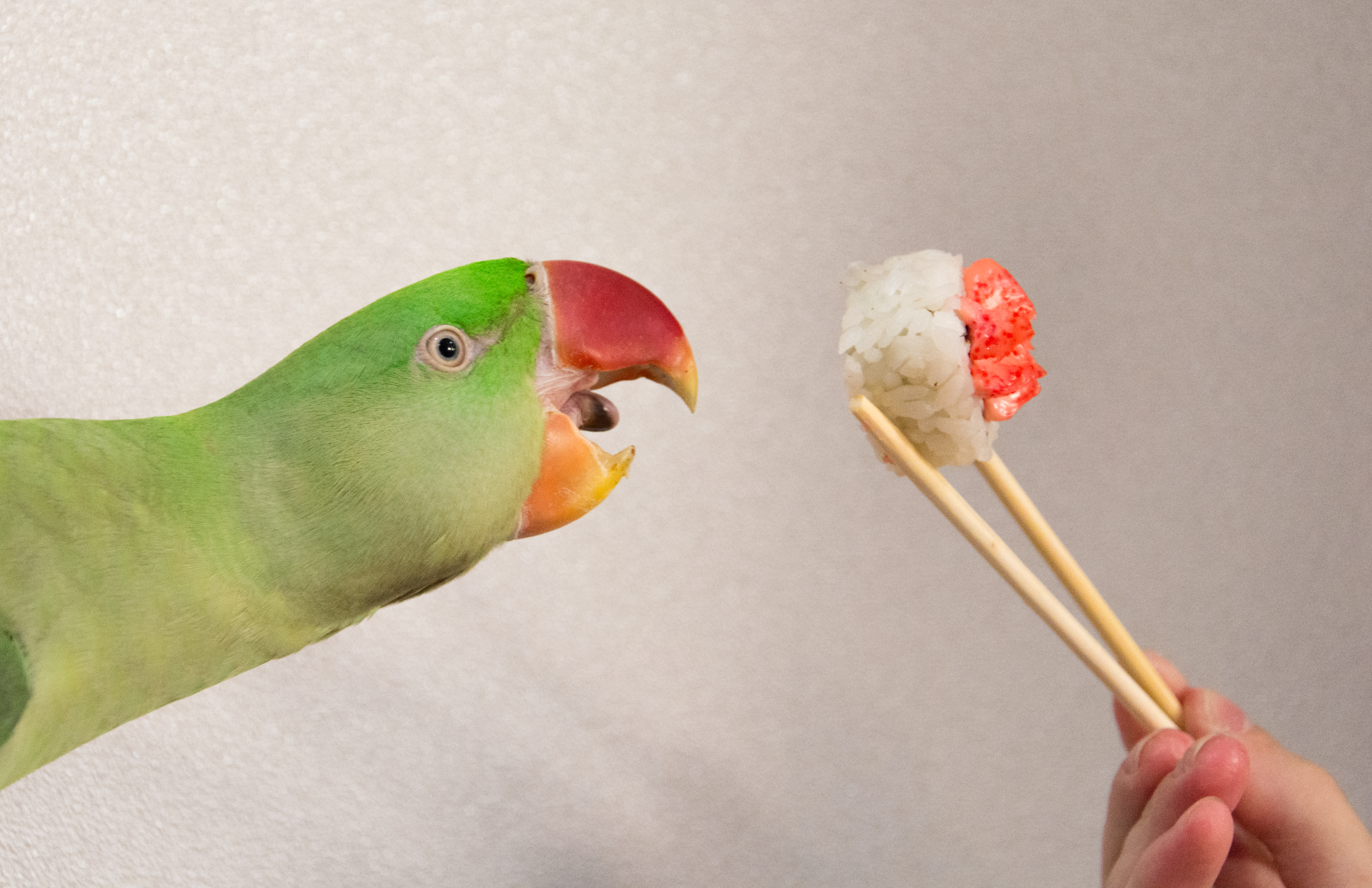 Компоновка достаточно гармоничная, заполнено пространство в правой и левой части кадра, что позволило добиться гармонии и уравновесить снимок по композиционной части. Части суши достаточно яркого цвета, как и клюв попугая, так что можно смело сказать, что в кадре присутствует рифма или по другому - перекличка. Пространство кадра использовано достаточно гармонично.