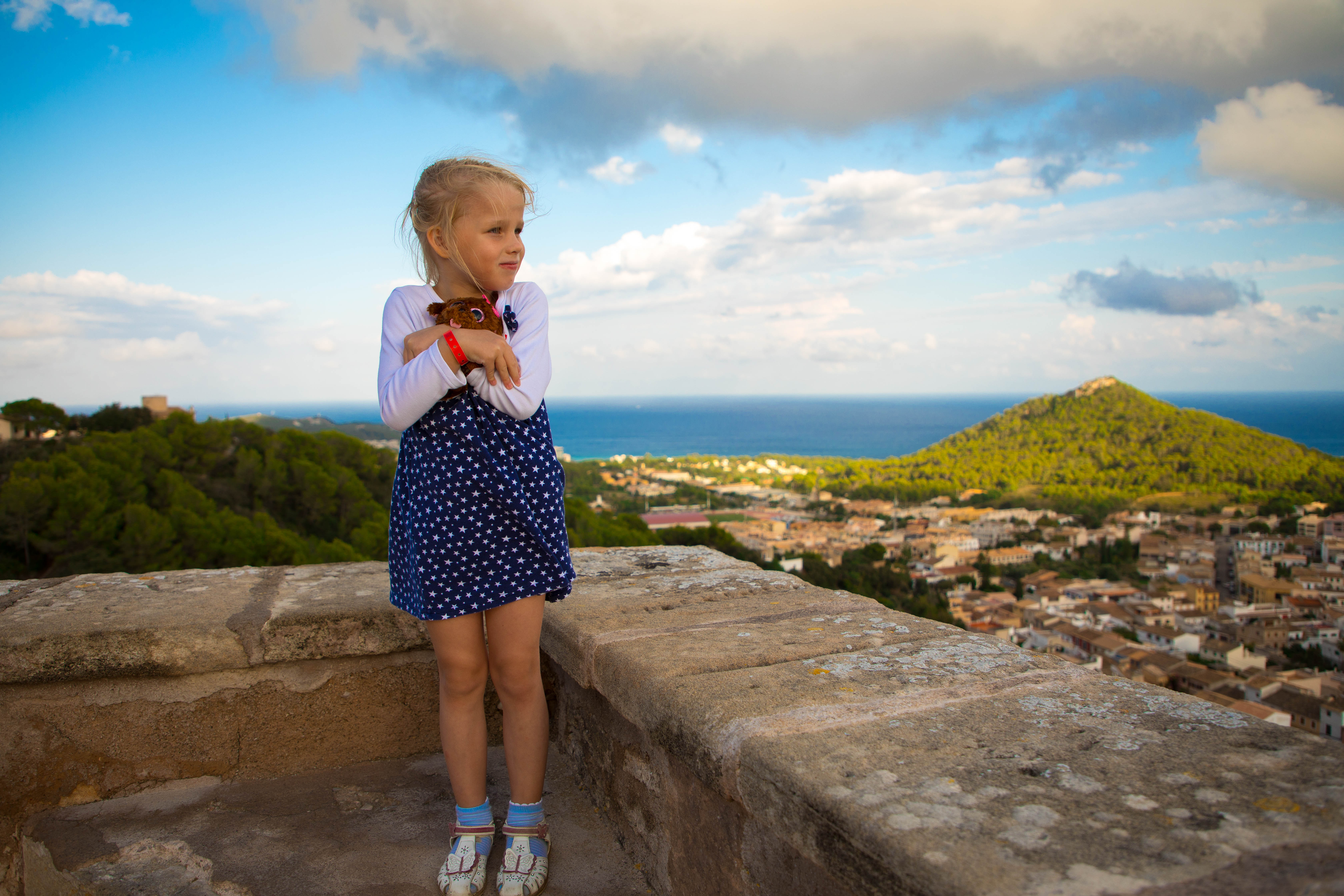 Как и предлагается, интересно сделать фотографию по теме, которая не представлена в ваших заданиях. Забрались на замок в горе, где было ветрено. Дочка немного замерзла. P.S. Поздно заметил, что ноги (носки) немного обрезал