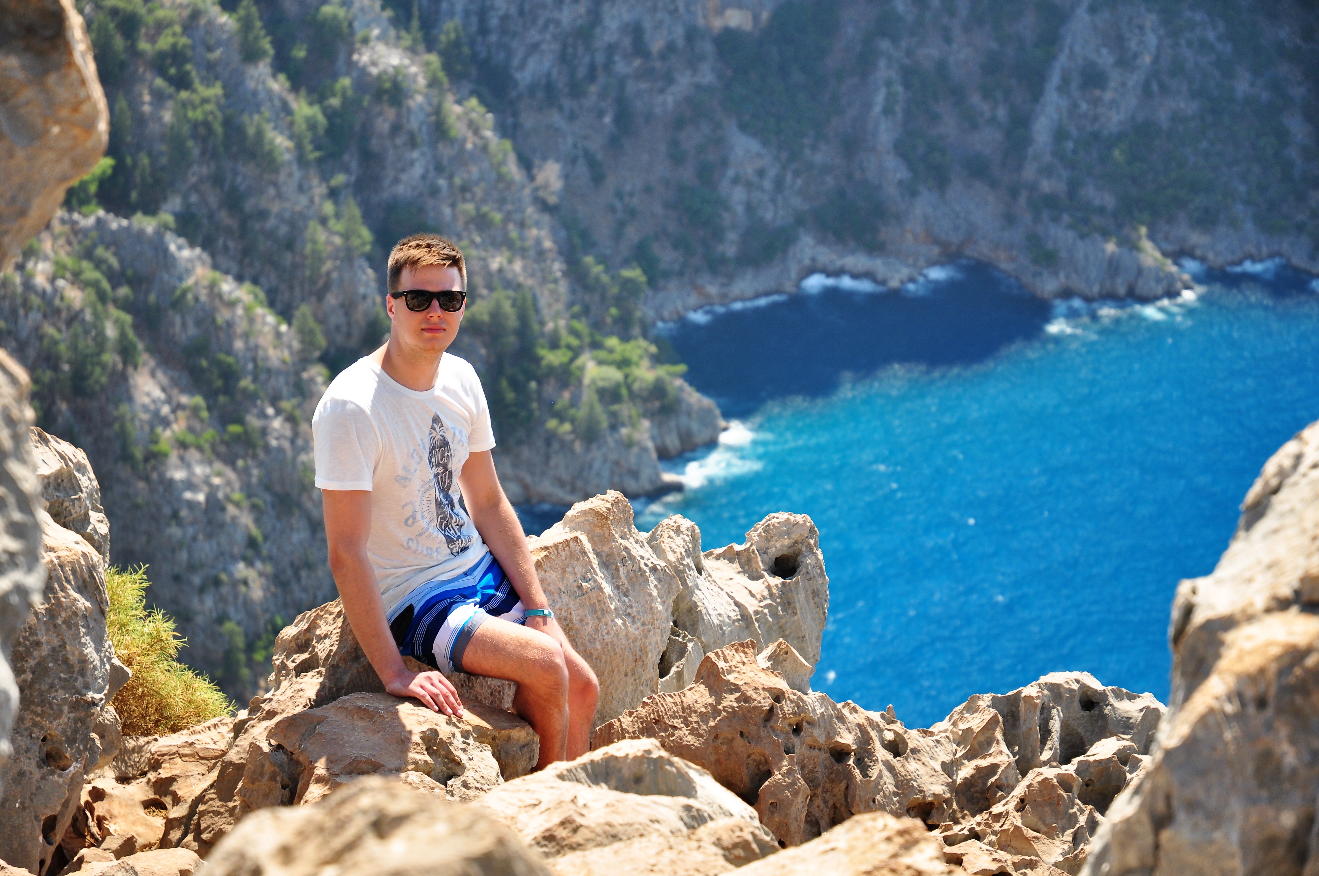 Отличный портретный снимок! Выбрали очень красивый вид. У снимка есть несколько планов. Камни слева и справа обрамляют портрет, создавая естественную рамку. Камни в размытии на переднем плане добавляют объем фотографии. Параметры подобраны корректно, фокус камеры попал точно по лицу человека. Контровой свет и удачное расположение лица позволили избежать пересветов и пятен свет на лице.