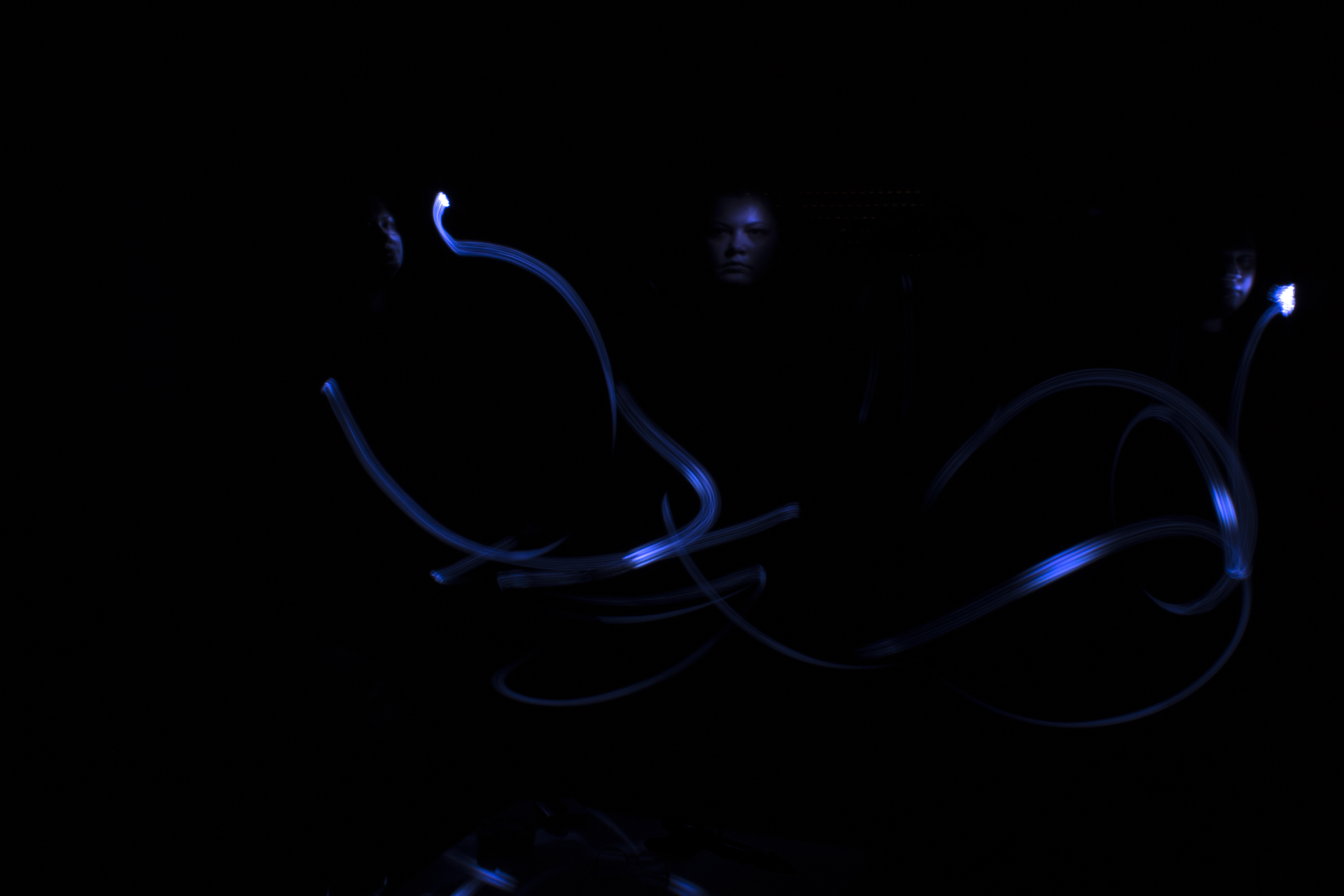 Iako je fotografija dosta tamna i potrebne su joj neke male korekcije zapravo je jako kreativna jer nije tipično "crtanje" svjetlom u prazno već ste koristili i modela te svjetlo obasjavali samo sa jedne strane lica.