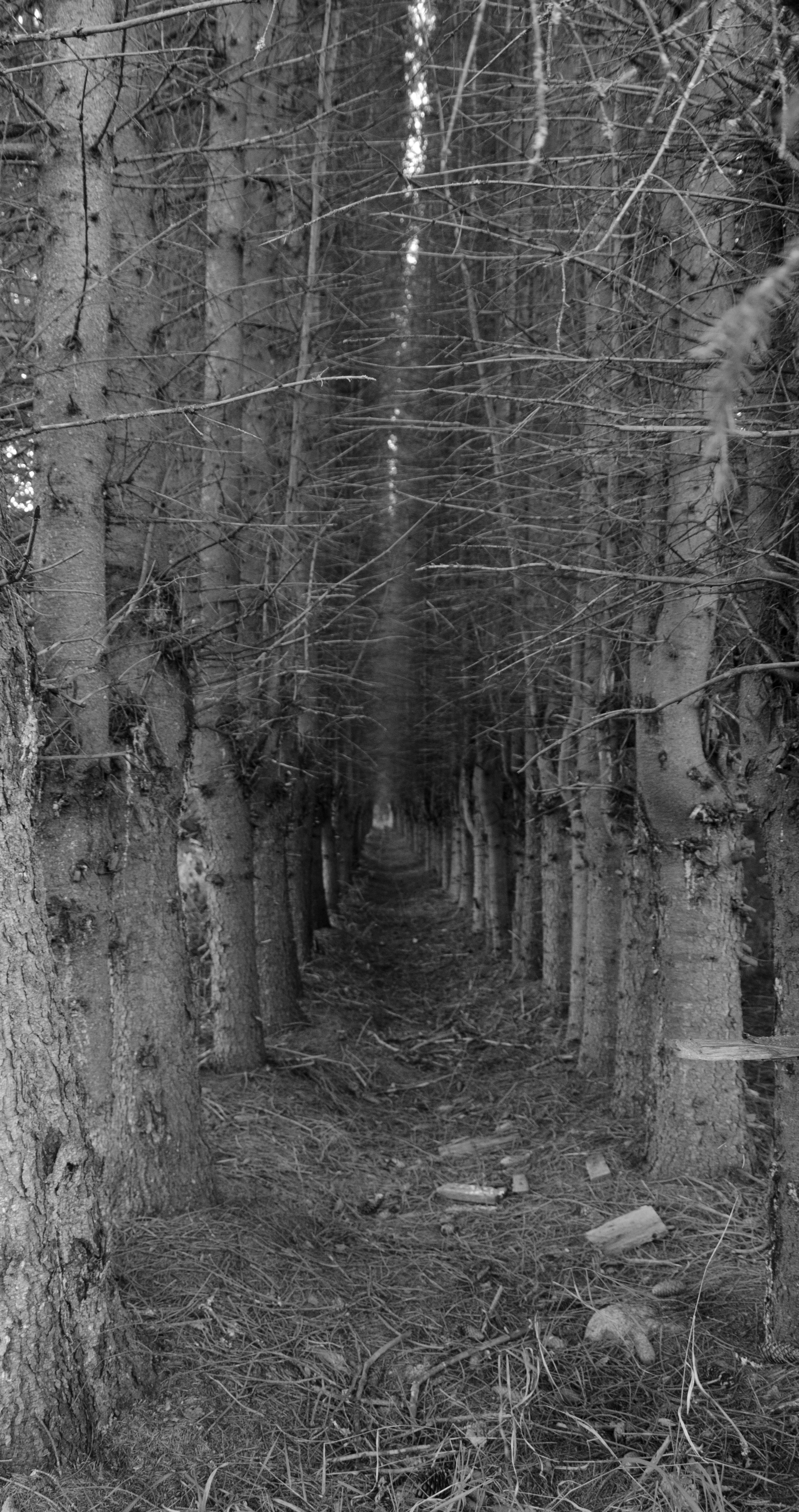 Очень фактурный кадр получился! Аллея создает отличную перспективу, при этом переплетения веток образуют узор в верхней части кадра. а стволы задают ритм. Черно-белый снимок позволяет сконцентрировать внимание на форме и ритме, не отвлекаясь на цвет.