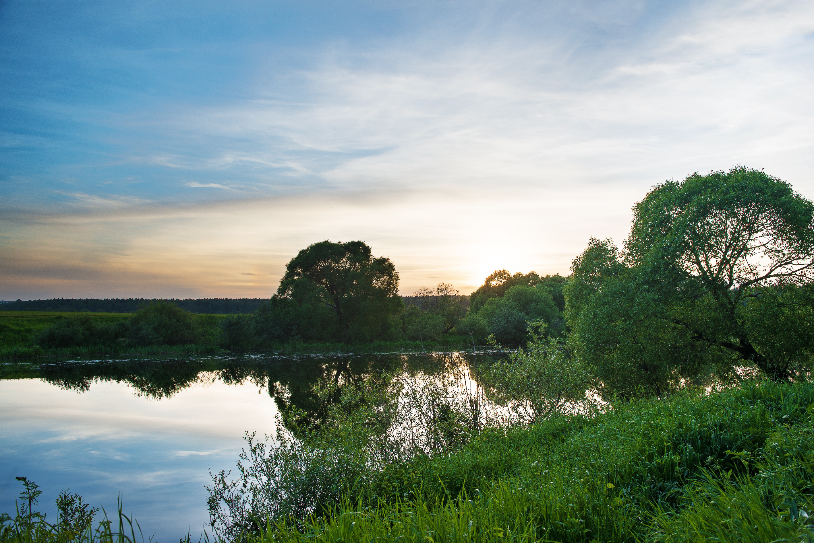 Переход цвета на небе добавляет объем. Насыщенные , яркие закатные цвета здорово оживляют пейзаж .