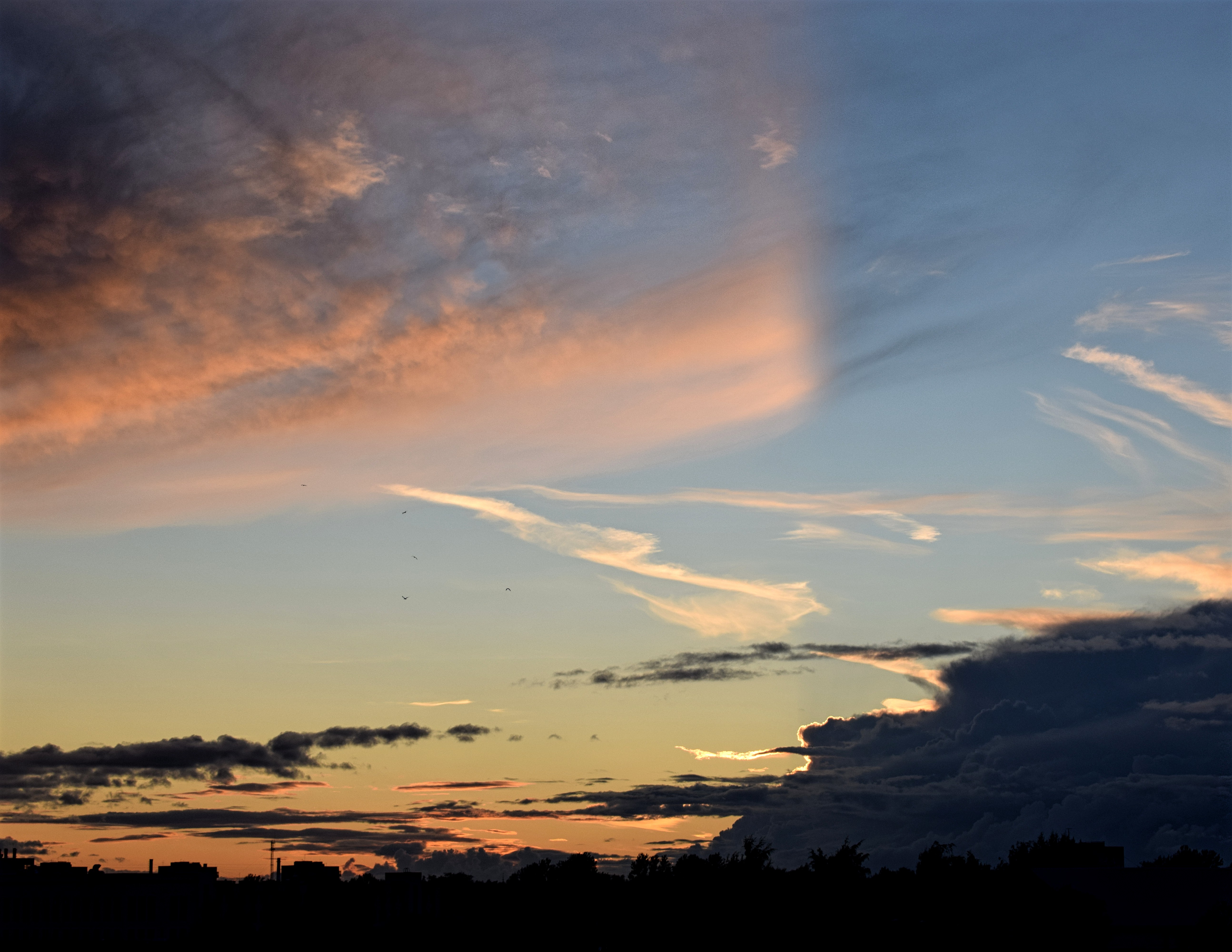 пониженная линия горизонта делает небо большим, просторным. В кадре много воздуха.